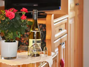 Komfortzimmer für zwei Personen im Landhausstil mit 30m² im 1. Stock:im Schlafraum Schreinermöbel aus hellem Fichtenholz, sowie Sitzecke u.Couch, im Vorraum eine moderne kleine Küche und ein neues Bad mit Waschtisch, Eckdusche und Glastür zum Wohnraum, außerdem Balkon mit Abendsonne - unser Allergikerzimmer mit Vinyldekorholz- und Fliesenböden.Beschreibung der Unterkunft