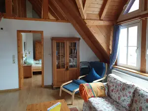 Die Ferienwohnung verfügt über einen offenen Wohnraum mit Küchenzeile und ein abgeschlossenes Schlafzimmer. Über eine Treppe erreichen Sie einen weiteren Schlafbereich, der als Kinderschlafzimmer genutzt werden kann (Maisonette, offen zum Wohnzimmer). Außerdem verfügt die Wohnung über einen Balkon.Beschreibung der Unterkunft