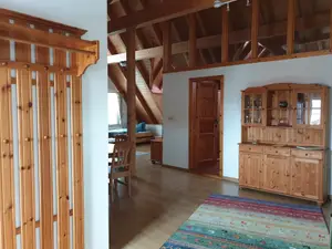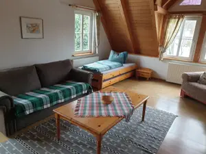 Ferienwohnung mit tollem Ambiente durch ausgebauten Giebel. Das Apartment verfügt über einen Wohn-/Schlafraum mit Schlafsofa, ein Schlafraum, offene Küchenzeile und Bad.Ferienwohnung mit tollem Ambiente durch ausgebauten Giebel (ein Schlafraum, ein Wohnraum mit Küchenzeile und Bad)