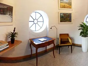 Heute können Sie auf ca. 70 m², verteilt über 4 Etagen, im Turm wohnen. 95 Treppenstufen führen hinauf in das Turmzimmer auf 18 Metern Höhe. Eine kleine aber feine Küche steht dort zu ihrer Verfügung, ebenso ein Kamin für romantische Abende. Laden Sie sich ein, zu zweit auf dem Balkon zu frühstücken oder in der Badewanne zu liegen. Sie werden mehr als einen Tag bleiben wollen.