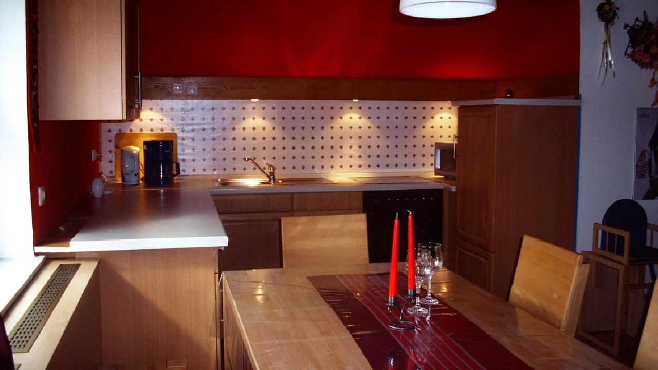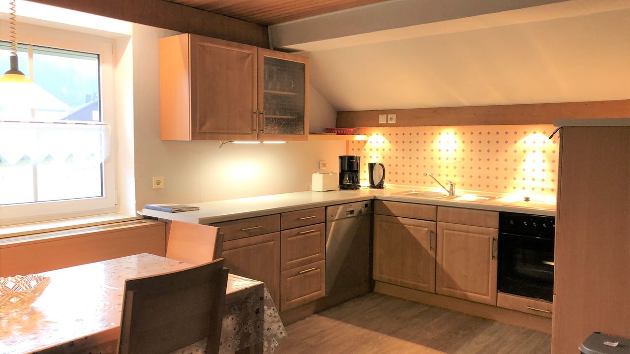 Ferienwohnung bestehend aus Küche mit Kühlschrank, Mikrowelle, Geschirrspüler, Wasserkocher, Kaffeemaschine E-Herd mit Backröhre, Esszimmer.Wohnzimmer mit TV Sterio-Anlage
