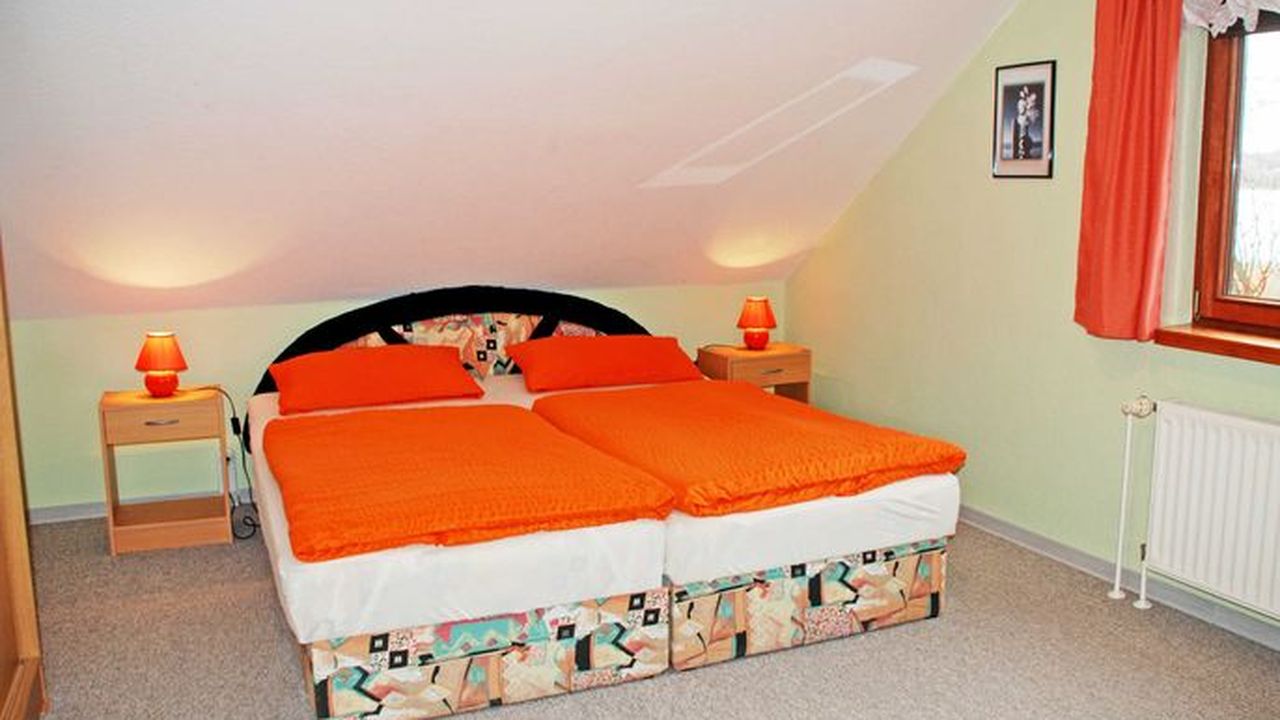 Das komfortabel eingerichtete Ferienhaus Adelheid mit Seeblick ist ca. 68 qm groß und ist für max. 5 Erwachsene ausgestattet. Im Wohnraum befinden sich eine bequeme Sitzcouch mit Tisch und ein TV-Gerät. Hier steht auch ein Esstisch mit Stühlen. Die moderne Küchenzeile ist mit einem Herd, Backofen, Abzugshaube, Wasserkocher, Kaffeemaschine, Toaster und Kühlschrank komplett ausgestattet. Das erste Schlafzimmer im Erdgeschoss verfügt über ein bequemes Doppelbett mit Nachttischen und Leselampen sowie einen Kleiderschrank.Das Dachgeschoss erreichen Sie über eine kleine Wechselstufentreppe. Hier befinden sich ein weiteres Schlafzimmer mit Doppelbett, Nachttischen und Leselampen, Flachbild-TV sowie Kleiderschrank. Hier kann für eine fünfte Person ein Zustellbett bereit gestellt werden. Aus diesem Zimmer haben Sie einen schönen Ausblick auf den Selliner See. Ein kleines Kinderreisebett und ein Hochstuhl können auf Wunsch kostenlos bereit gestellt werden.