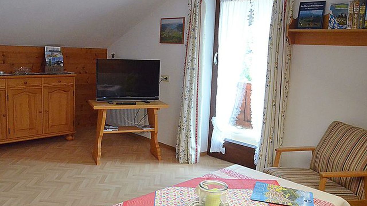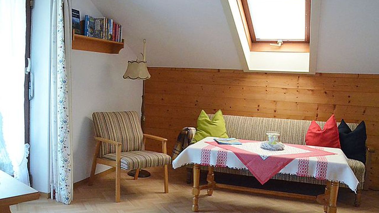 2. Stock Ferienwohnung „Wallberg“ (Dachwohnung)ca. 50 qm mit Dachschrägen, geräumig für 2 Personen, max. 3 Personen möglich, im bayrischen Stil möbliert.