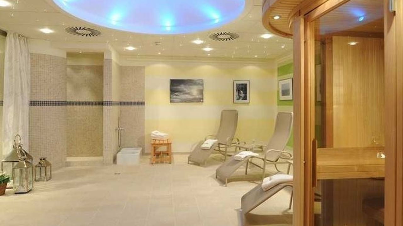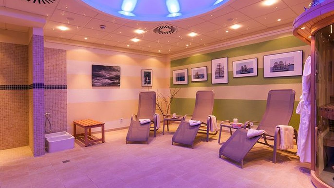 Saunabereich mit ausreichend Platz für 4 Personen, Dusche, Kneipp-Fußbäder, Ruheliegen, Ruhesessel