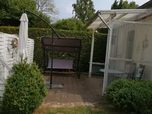 -Kamin , Heizung , Grillplatz u. Sitzecke im Grünen hinter dem Bungalow