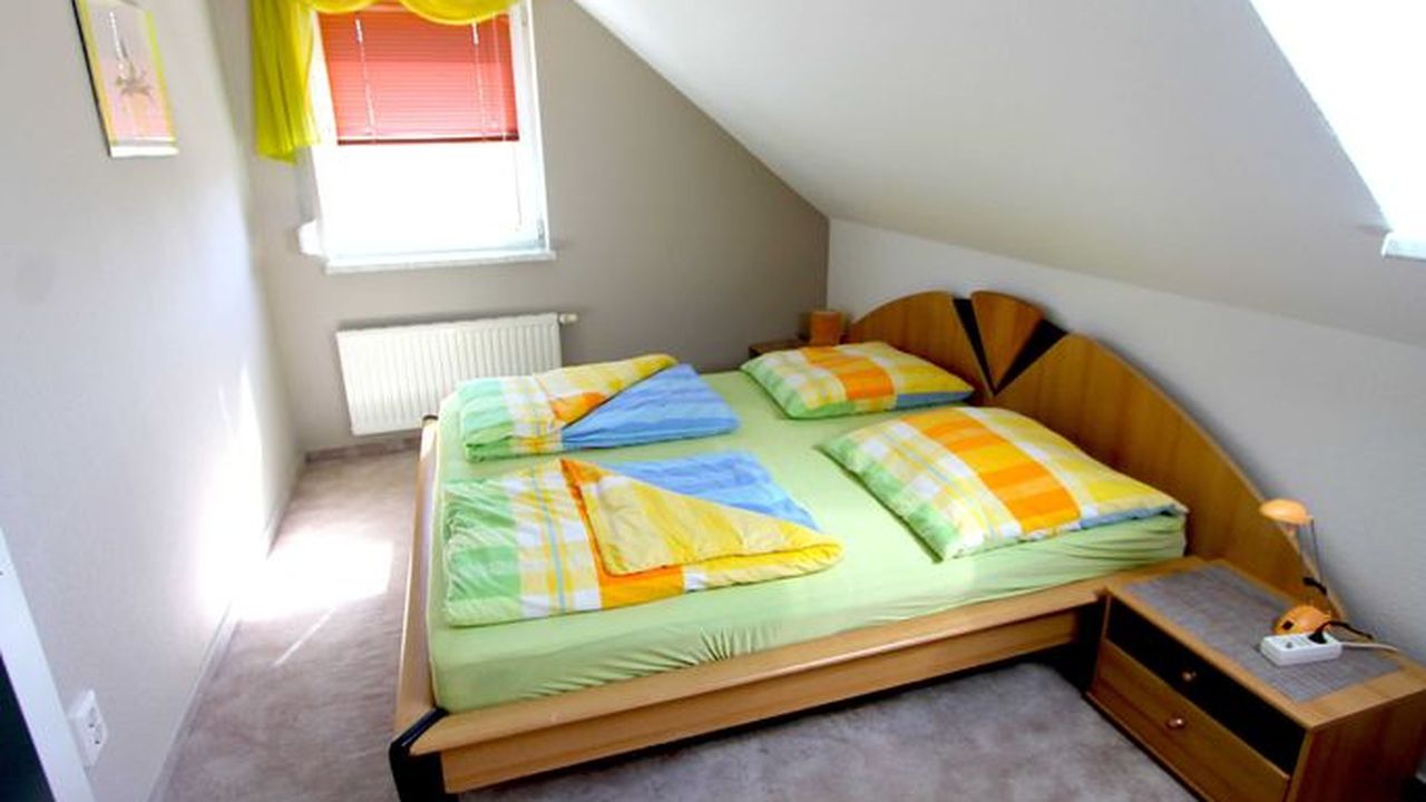 Das Ferienhaus verfügt über zwei separate Schlafzimmer im Obergeschoss ( 1 x Doppelbett sowie 1 Einzelbett und 1 Futonbett ).