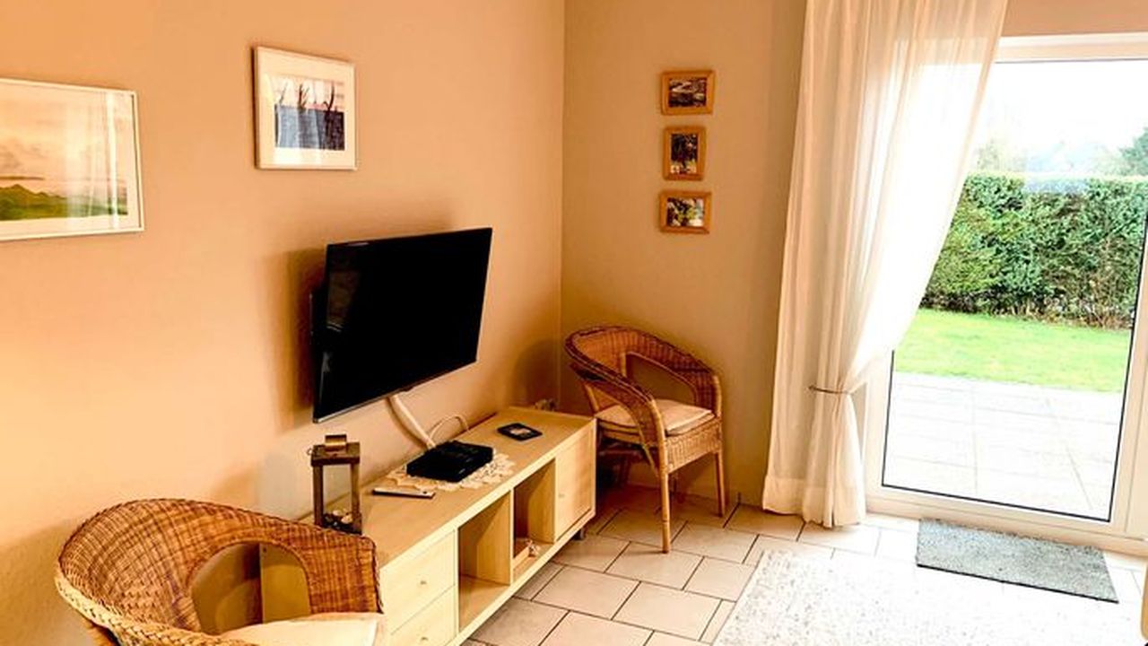 WLAN, NICHTRAUCHER, HAUSTIERE WILLKOMMEN, NICHT FÜR MONTEURELichtdurchflutete und gemütliche Doppelhaushälfte (ca.75 m²) in einer verkehrsberuhigten Feriensiedlung nur 150 m vom Strand und der Steilküste entfernt.