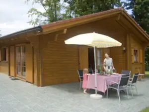 Das Ferien-Blockhaus Weißerstegsieben ist mit einem großzügigen und hohen Wohn- und Essbereich, einem Badezimmer mit Dusche und einer Küche mit Backofen und Cerankochfeldern und Geschirrspülmaschine ausgestattet.