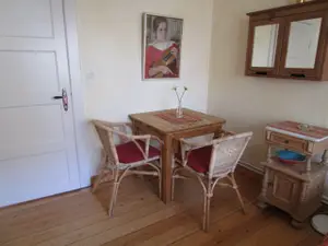 Die 25 qm große Ferienwohnung liegt im Parterre, bietet Platz für 2 Personen und ist wie folgt aufgeteilt. Über den Flur gelangen Sie in die Ferienwohnung. Ein Doppelbett , ein Tisch und zwei Stühle, ein TV-Gerät sowie ein Radio mit CD-Player sind vorhanden. Eine kleine sep. Küche ist mit einer Küchenzeile ausgestattet mit Ceranfeld, Backofen, Kühlschrank mit Gefrierfach, Geschirrspüler, Toaster und eine Kaffeemaschine. Das Bad besitzt eine Dusche und ein WC. Eine Waschmaschine und ein Trockner stehen für alle 3 Ferienwohnungen zur gemeinschaftlichen Nutzung im Keller. Weitere Angaben: W-LAN vorhanden, Bettwäsche und Handtücher sowie die Endreinigung sind im Preis enthalten. DTV Klassifizierung nicht teilgenommen.Beschreibung der Unterkunft