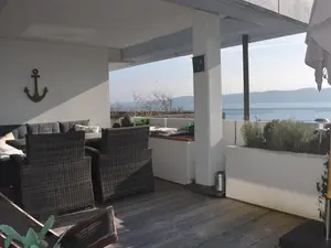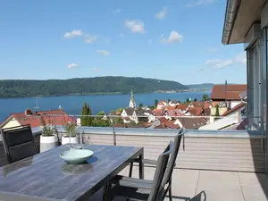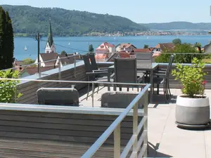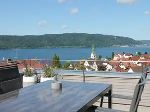 Die Wohnung im Dachgeschoss ist ca. 90 qm groß und eignet sich für bis zu 4 Personen, bitte beachten Sie, dass nur Erwachsene Personen in der Wohnung "Seesicht" möglich sind. Sie ist mit Parkettboden ausgestattet und verfügt über einen großen Panoramabalkon mit Tisch, Relaxstühlen und uneingeschränkter Seesicht. Das Wohnzimmer ist mit Kabel-TV, Hifi-Anlage, bequemem Relaxsessel und Couch, großer Tisch/Sitzgruppe und kleiner Bibliothek ausgestattet. Zudem verfügt die Wohnung über zwei großzügige Schlafzimmer, ein Badezimer mit Dusche und WC. Bettwäsche und Handtücher werden gestellt. Im Wohn- und Studioschlafzimmer sowie in der Küche verwöhnt Sie ein herrlicher Blick auf den See. Die gemütliche Wohnküche mit Esstischgruppe ist voll ausgestattet.Beschreibung der Unterkunft