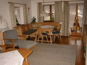 Unsere Wohnung 6 ist 82 qm groß, hat ein sehr schönes, großes Wohnzimmer (ca. 28 qm) mit Doppelter Schlafcouch, zwei große Schlafzimmer, große Diele, Badewanne + WC und eine sehr schöne Küche mit Geschirspüler, Mikrowelle und Backofen. Kleine Abstellkammer für Koffer oder Ski. Die Räume sind im bayrischen Stiel eingerichtet. Kabelfernsehen(42) und eigenes Telefon, Südbalkon und ein eigener Eingang sind vorhanden. Bettwäsche und Handtücher sind im Preis enthalten.Sterioanlage mit Blue-Tooth Verbindung. Doppelte Ausziehchouch im Wohnzimmer.