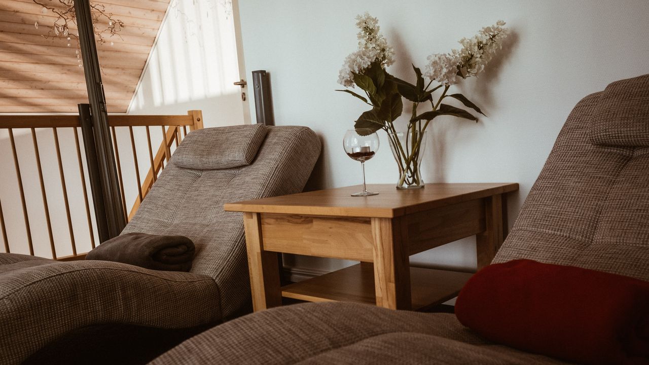 2 Schlafzimmer, ein heller Wohnbereich mit integrierter Essecke und ein gut ausgestatteter, großzügiger Küchenbereich vervollständigen die Einrichtung. Außer den Schlafzimmern und dem Gäste-WC befindet sich im OG eine offene Galerie mit Relaxliegen zur Entspannung.