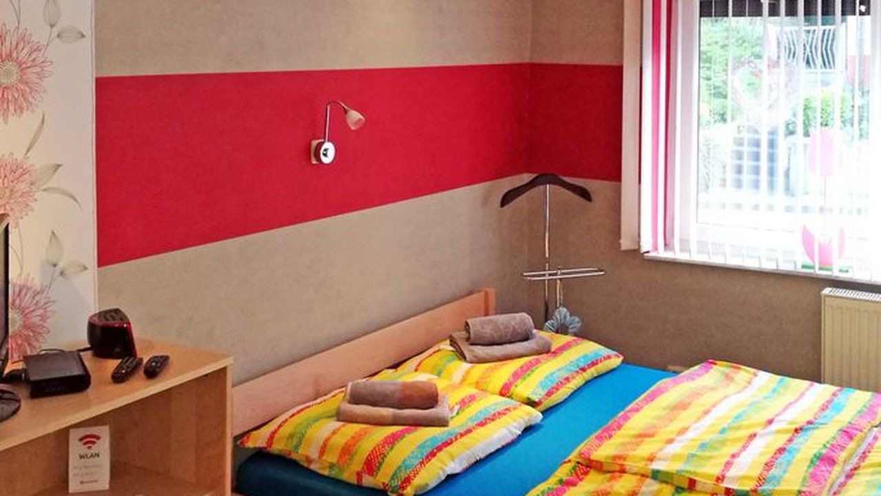 Die 30m² große Ferienwohnung Jan liegt im Hochparterre eines Wohnhauses und hat einen eigenen Eingang. Du genießt hier also ganz viel Privatsphäre. Im kombinierten Wohn- und Schlafraum schläfst du bequem in einem Doppelbett (160x200). Für eine dritte Person oder ein Kind steht zusätzlich eine Schlafcouch (90x200) zur Verfügung. Auch ein Kinderbeistellbett kann gern bereitgestellt werden. In der separaten Küche findest du alles für den kleinen Urlaubsappetit: zwei Kochplatten, eine Mikrowelle, Wasserkocher, Kaffeemaschine, Spüle und einen Kühlschrank. Am Esstisch mit Stühlen kannst du in Ruhe frühstücken oder den Tag bei einer Tasse Tee ausklingen lassen. Das Badezimmer ist mit Dusche und WC ausgestattet. Kostenloses WLAN ist natürlich vorhanden. Draußen erwartet dich eine kleine Terrasse, die du ganz entspannt nutzen kannst, perfekt für den Morgenkaffee oder den Grillabend.Sonstiges