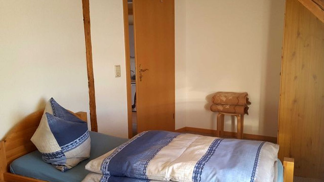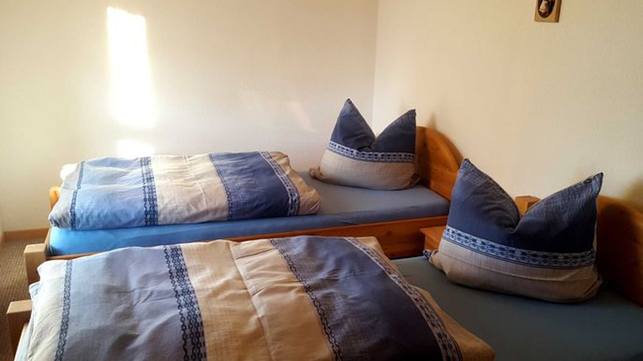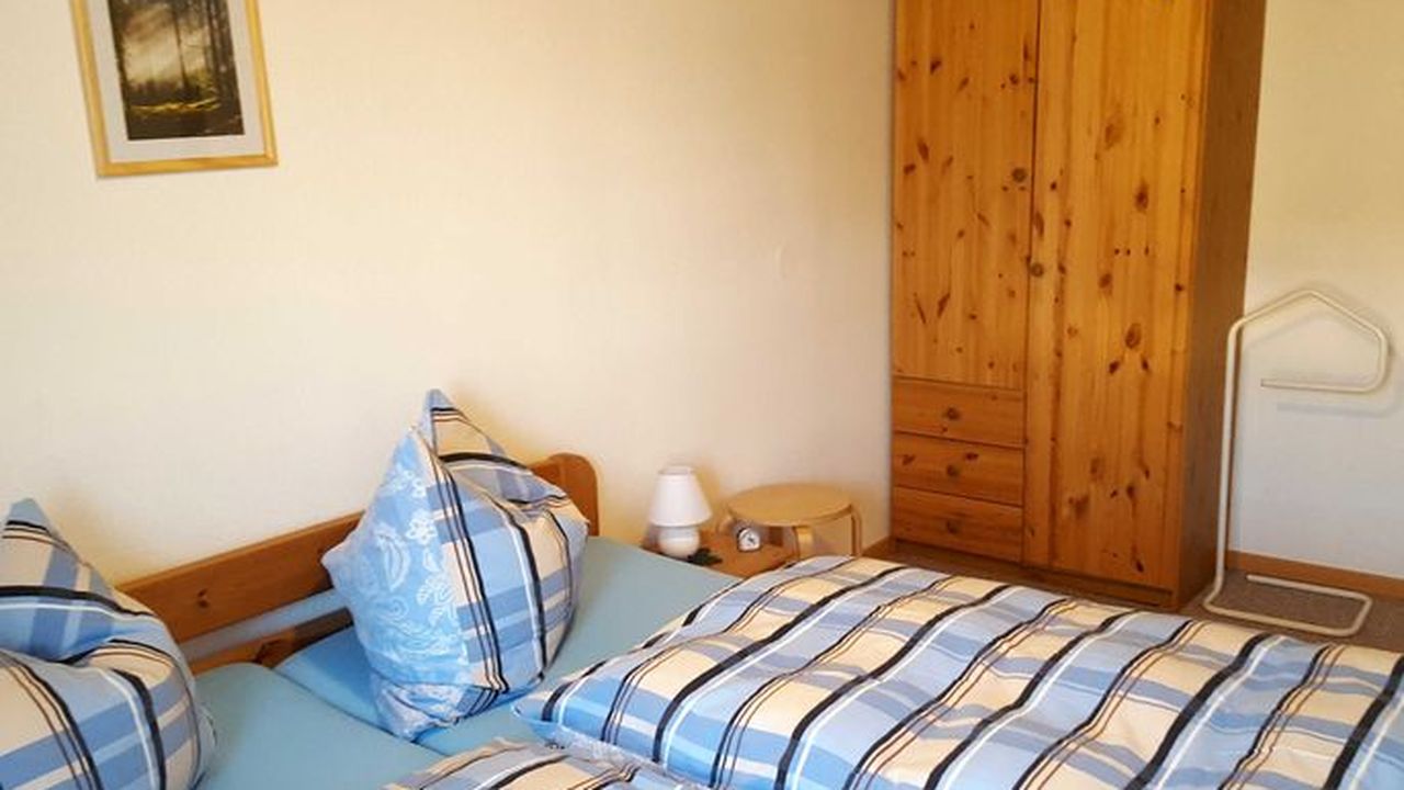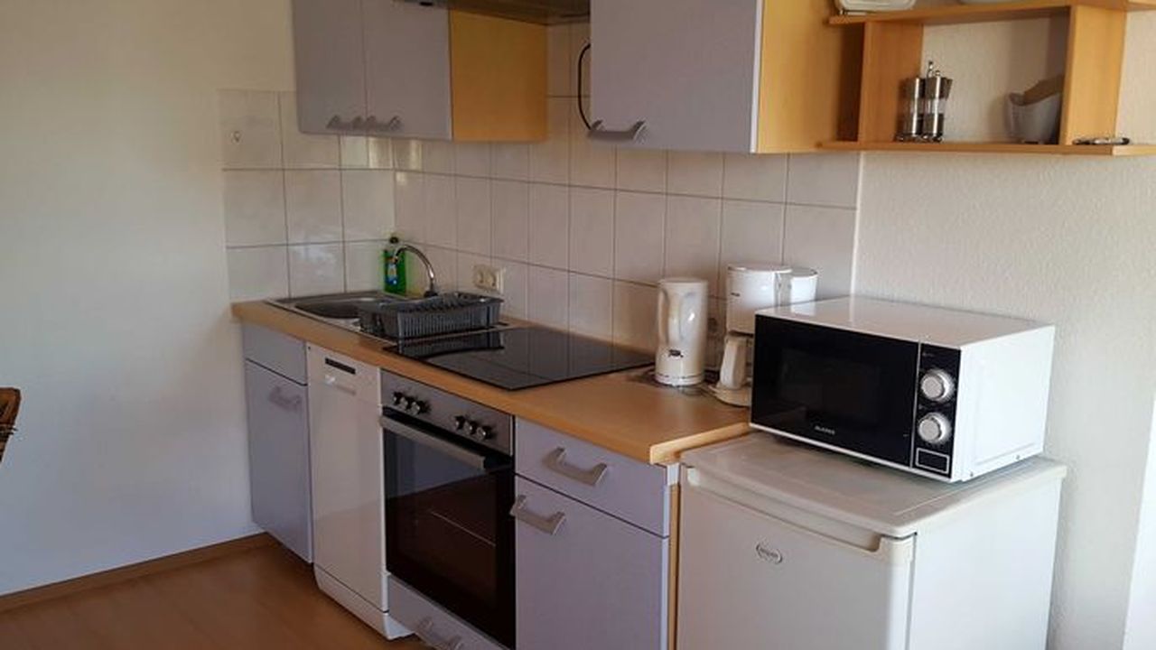 Die Ferienwohnung ist eine 3-Raumwohnung im 1. Obergeschoss mit einem Wohnzimmer, offener Küche mit Mikrowelle, Geschirrspüler und einem Esstisch. Vom Wohnzimmer aus gelangen Sie auf den Balkon. Über zwei Stufen erreichen Sie die 2 Schlafzimmer mit einem Doppelbett bzw. 2 Einzelbetten. Desweiteren ist noch Platz für 1 Kind bis 3 Jahre im Kinderreisebett. Das Bad verfügt über eine Dusche und ein WC, sowie einem Waschplatz. Angeboten wird WLAN über HOT Spot. Die Wohnung ist eine Nichtraucherwohnung. Ein Bügelbrett gehört ebenfalls zur Ausstattung der Wohnung.Sonstiges