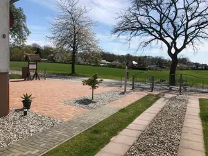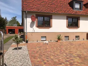 Die Ferienwohnung befindet sich in der oberen Etage im Haus des Vermieters. Sie ist 57 m² groß und familiengerecht eingerichtet. Sie besteht aus einem Wohnraum mit Sitzgruppe, Radio, TV, einem Schlafraum mit Doppelbett, einer Küche mit Sitzgruppe und einem Bad mit WC und Dusche. Eine Terrasse mit Grill und Gartenmöbel stehen zur Verfügung. Auf dem Hof befindet sich ein Pool (7mx4m, 1,20m tief), der genutzt werden kann. 1 Hund (Risthöhe 40 cm) ist erlaubt für 4,00 Euro pro Tag. Bettwäsche und Handtücher sind vorhanden. Fahrräder können für 4,00 Euro pro Tag ausgeliehen werden. Anreise ab 16.00 Uhr, Abreise bis 10.00 Uhr.Sonstiges