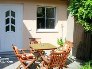 Unsere klein, mit viel Liebe zum Detail eingerichtete Ferienwohnung Lotte mit 32 m² befindet sich im Anbau des Hauses und ist über den Innenhof erreichbar. Sie verfügt trozt ihrer geringen Größe über ein komplett ausgestattete Küche sowie einen Wohn-Schlafbereich mit angrenzendem Bad. Die fest eingebaute Klimaanlage sorgt für eine angenehme Temperatur an heißen Tagen. Auch hier haben unsere Gäste die Möglichkeit, bei schönem Wetter das Frühstück bzw. den Abend im Freien zu geniessen. Ebenfalls inklusive ist die Internetnutzung per WLANUnsere klein, mit viel Liebe zum Detail eingerichtete Ferienwohnung Lotte mit 32 m² befindet sich im Anbau des Hauses und ist über den Innenhof erreichbar. Sie verfügt trozt ihrer geringen Größe über ein komplett ausgestattete Küche sowie einen Wohn-Schlafbereich mit angrenzendem Bad. Die fest eingebaute Klimaanlage sorgt für eine angenehme Temperatur an heißen Tagen. Auch hier haben unsere Gäste die Möglichkeit, bei schönem Wetter das Frühstück bzw. den Abend im Freien zu geniessen. Ebenfalls inklusive ist die Internetnutzung per WLAN.