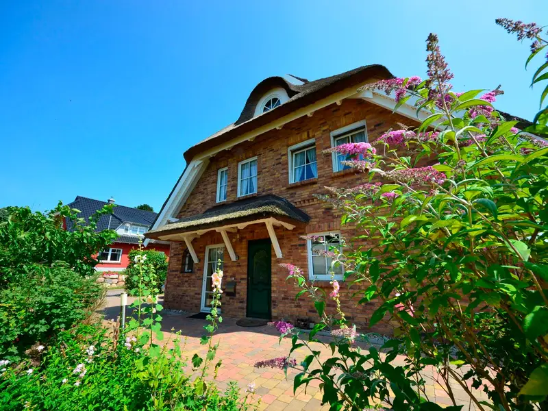 Die reetgedeckte und verklinkerte Doppelhaushälfte liegt in der erste Reihe mit unverbaubarem herrlichem Blick auf die Ostsee und die gegenüber liegenden Orte Thiessow und Klein Zicker.