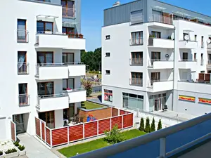 Das Gebäude, in dem sich die Ferienwohnung befindet, liegt in der Wohnsiedlung PLATAN, welche ein modernes und ästhetisches Wohnkomplex ist. Das Gebäude verfügt über einen Aufzug. Auf dem Grundstücksgelände sind viele Grünflächen und Kinderspielplätze, die von Gästen genutzt werden können.Lage