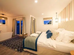 Die Schwimmenden Suiten bieten Freiraum und Rückzugsmöglichkeit. Auf ca. 40 m² erleben Sie ein besonderes stilvolles Wohnerlebnis. Mit hochwertigem Interieur und Freistil-Möbeln von Rolf Benz. Boxspringbetten der Luxusklasse und die gesunde Luft Usedoms versprechen einen langen und erholsamen Schlaf.
