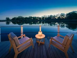 Viele Details und eine exklusive Einrichtung sorgen für ein Wohlfühlen im Hausboot auf den ersten Blick. Morgens lächelt die Sonne durch die bodentiefen Fenster und lässt den Tag mit viel Sonnenschein beginnen. Abends lädt die Terrasse mit einem Panorama-Blick über die Krumminer Wiek zu einem Glas Wein und einen Blick in den Sternenhimmel ein.