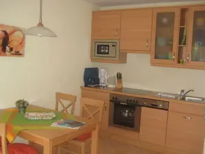 Diese Ferienwohnung hat eine Größe von 55m² und eignet sich für einen Urlaub von bis zu sechs Personen. In der Wohnung befinden sich zwei separate Schlafzimmer, davon eines mit einem großen Doppelbett. Der Wohn- und Essbereich ist offen gestaltet, die Küchenzeile modern ausgestattet. Vom Wohnbereich aus erreicht man die eigene Terrasse, welche mit einer Sitzgruppe und einem Strandkorb ausgestattet ist. Das innenliegende Badezimmer ist modern und hell. Ein Kinderbett kann auf Wunsch bereit gestellt werden.Sonstiges