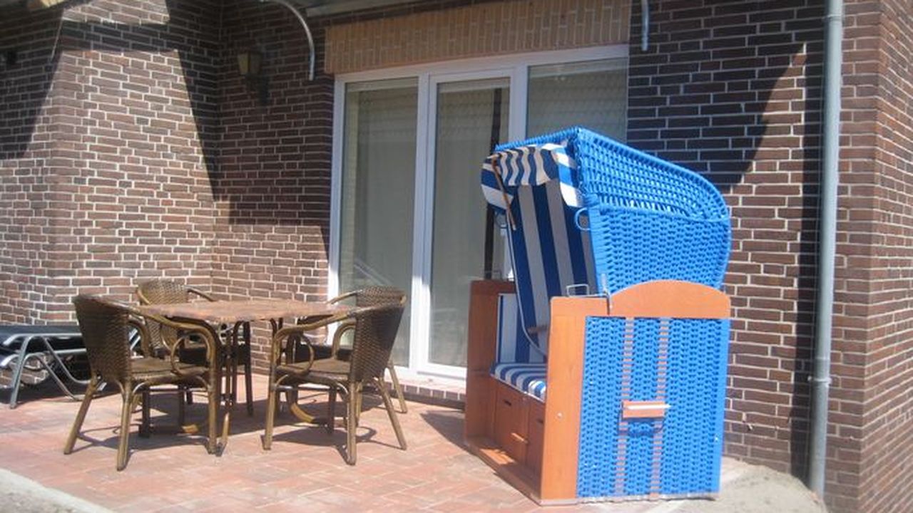 Wohnungen mit eigener Terrasse haben auch einen eigenen Strandkorb zur Verfügung.