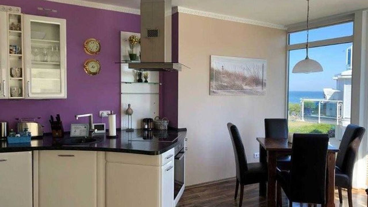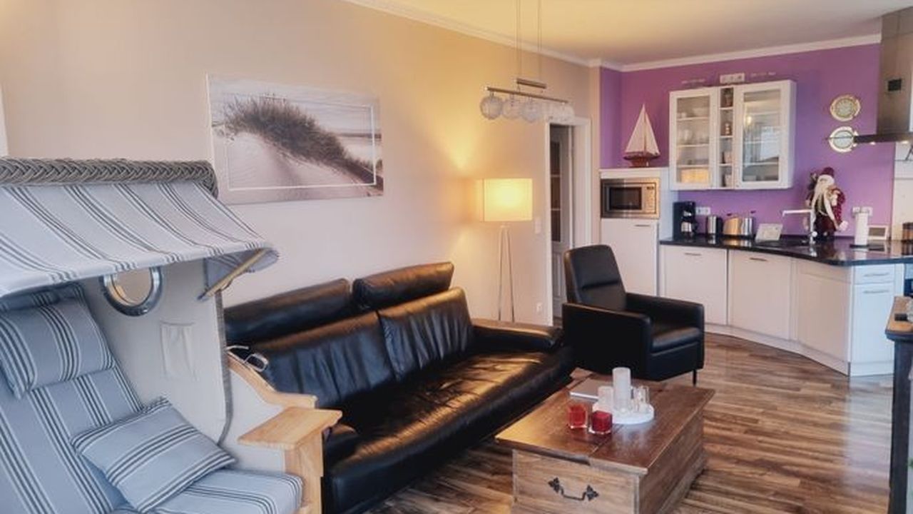 - in der 1. Etage/Aufzug - möblierter Balkon mit Meerblick (Nord/Ostlage) - Autostellplatz Hiddensee 12a - Tiefgarage (Einfahrtshöhe 2,15 m) - Fahrradkeller - Waschmaschine und Trockner gegen Gebühr - Nichtraucherappartement! Keine Haustiere! - WLAN-Bereitstellung kostenfrei (ohne Gewähr) - Wohnbereich mit integrierter Küche und Essplatz - Küchenzeile - Herd mit Backröhre, Mikrowelle, Kühlschrank mit Gefriermöglichkeit und Geschirrspüler - 1. Schlafzimmer mit Doppelbett und Kleiderschrank - DU/WC mit Fön- in der 1. Etage/Aufzug