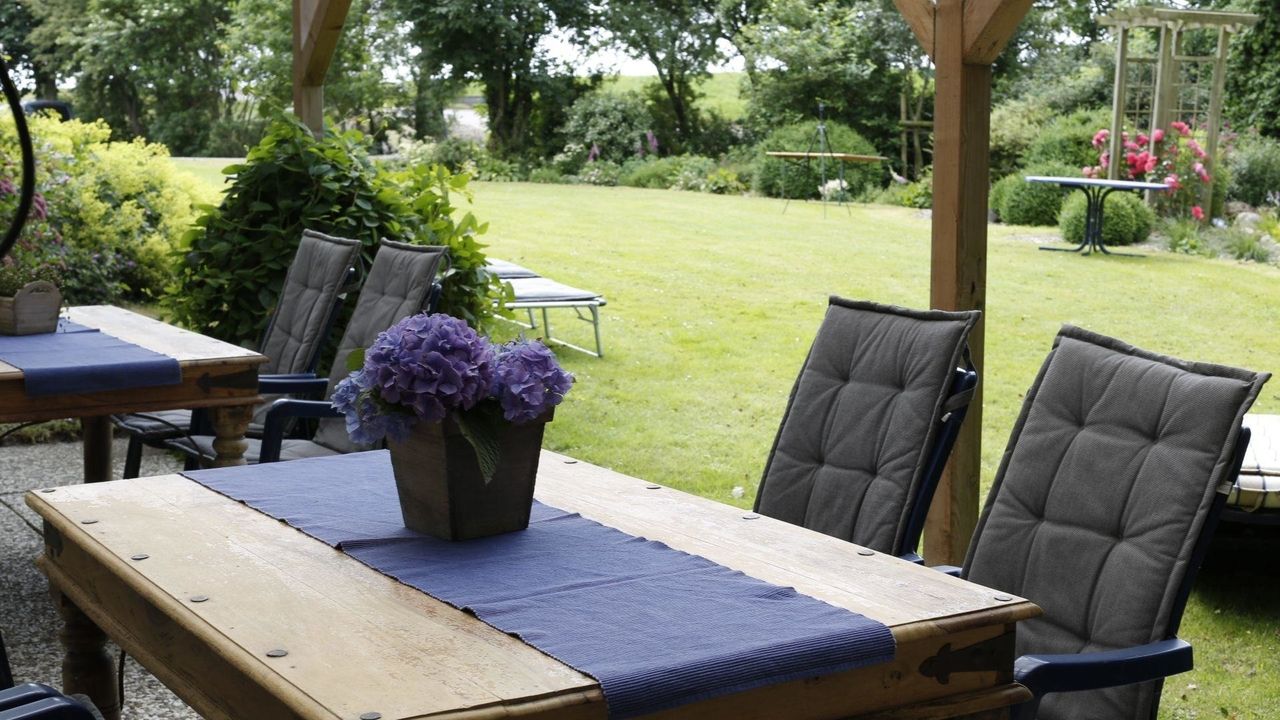 Feirenwohnung mit Terrasse, Liegewiese, Strandkorb, Grillplatz, Fahrradstellplatz, und einen wunderschönen Garten. Carport befinden sich vor der Tür.