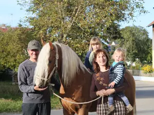 Brock-Hof die Bio-Erlebnis-Reitanlage eine Oase für Ross & Reiter!Dort wo andere Urlaub machen im wunderschönen Oberpfälzer Jura, mitten im Herzen des Altmühltals befindet sich die hochmoderne Reitanlage der Familie Götz. Hier findet jeder Reiter und jedes Ross was sein Herz begehrt. Sei es im HIT Aktivstall, in den neun Paddockboxen oder den vier Außenboxen. Für Ihren Vierbeiner haben Sie die Wahl. Fit im HIT Aktivstall oder wohlbehütet in der Boxenhaltung mit täglichem Auslauf in der Herde oder auf Einzelpaddocks. Daniela Cerotta-Götz geht in Sachen Futter kein Risiko ein. Gefüttert wird ausschließlich betriebseigenes Bio-Futter wie Heu, Hafer und Grascobs. Die Fütterung von Müsli und Mineralfutter ist nach Absprache möglich. Sehr beliebt sind neben dem Reitunterricht die erlebnisorientierten Angebote. Hier geht das Spektrum vom Ponyreiten der 3-jährigen über das Turnen auf dem Pferd für die Schulkinder bis hin zu Kindergeburtstagen. Verschiedene Lehrgänge und Veranstaltungen runden das Angebot ab. Auf dem weitläufigen Gelände der Reitanlage mit einer modernen Reithalle, einem beleuchteten Ganzjahresreitplatz und einem Longierzirkel vergeht die tägliche Arbeit mit Ihrem Pferd wie im Flug. Da verwundert es nicht, dass der Reiterhof auch bei Wanderreitern ausgesprochen beliebt ist. Das Ausreitgelände lässt keine Wünsche offen. Seit Sommer 2016 sind nun die renovierten Ferienwohnungen mit je drei Sternen ausgezeichnet. Dem Urlaub auf dem Reiterhof, sei es mit oder ohne eigenen Ross, steht somit nichts mehr entgegen. Unser Ferienhaus wurde anno 2001 gebaut und ursprünglich als "Reiterstüberl" genutzt.