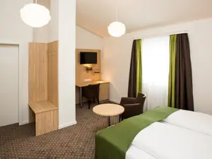 Das Doppelzimmer Standard ist ausgestattet mit Dusche/ WC, Fön, TV, Safe, Kühlschrank, W-LAN und Telefon sowie teilweise mit Balkon.Beschreibung der Unterkunft