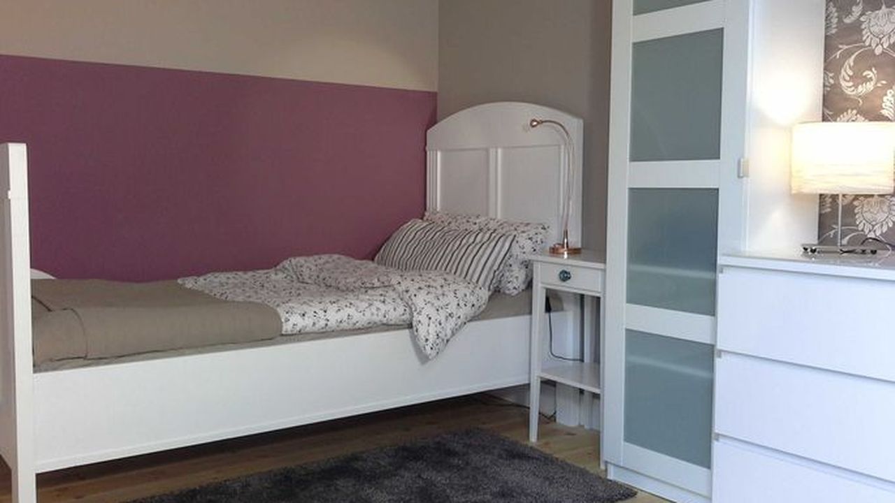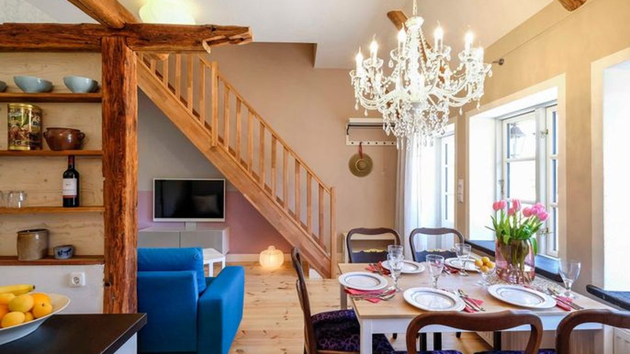 Der Parkplatz liegt unmittelbar vor der 35 m² großen umzäunten Terrasse die mit Holzmöbeln und Kissen ausgestattet ist. Die ca. 60 m² große Wohnung erstreckt sich über 3 Etagen. Im Erdgeschoß der Wohnung befindet sich der Wohnraum mit Küche und Esstisch. Der Wohnraum hat einen abgetrennten Bereich für ein gemütliches Sofa mit Blick auf den 48 Flachbildfernseher. Eine Musikanlage mit CD-Player und USB-Anschluss sorgen für Unterhaltung und gemütliche Entspannung. Die Hochglanzeinbauküche ist zweizeilig mit Kochinsel. Kühlschrank inkl. Gefrierfach, Spüle und Geschirrspüler befinden sich auf einer Seite und darüber erstrahlt die beleuchtete Vitrine mit Geschirr und Gläsern. Der Herd mit Cerankochfeld und Tastbedienung, einem Backofen sowie zwei Unterschränke mit Schubladen bilden die Kochinsel. Der Essbereich grenzt an die Kochinsel. Über dem Holztisch mit 5 antiken Stühlen thront ein wunderschöner Kronleuchter mit 12 Leuchten, der stufenlos gedimmt werden kann. In die 1. Etage führt eine Holztreppe in einen kleinen Flur von dem das Bad und das erste Schlafzimmer erreicht werden. Das Badezimmer mit nostalgischen grün-weißen Fliesen ist ausgestattet mit einer Badewanne und Regendusche, einem Waschtisch mit zwei Schubladen, einem großen Spiegel mit zwei zusätzlichen Leuchten und einem Handtuchheizkörper. Es liegt ein Föhn mit Diffuser bereit, ebenfalls pro Person ein Bade- und ein Handtuch. Das Schlafzimmer hier ist ausgestattet mit einem Doppelbett (160 x 200) und einer wundervoll dicken Matratze. Jede Bettseite hat einen Nachttisch mit einer Leselampe und davor einen flauschigen Teppich. Neben dem Kleiderschrank mit Innenbeleuchtung steht eine antike Kommode mit 3 Schubladen. Ein stilvoller Spiegel, eine nostalgische Glasschale und eine zusätzliche Tischlampe mit gedimmten Licht sorgen für Wohlfühlatmosphäre Die Betten sind mit toller Bettwäsche frisch bezogen. In die 2. Etage führt eine Holztreppe in einen kleinen Flur von dem die zwei weiteren Schlafräume abgehen. Das zweite Schlafzimmer ist ausgestattet mit zwei antiken Einzelbetten. Jedes Bett hat einen Nachttisch mit einer Leselampe und davor einen flauschigen Teppich. Zwei hohe Kleiderschränke in der Mitte mit Innenbeleuchtung bieten viel Stauraum. Dazwischen stehen zwei Kommoden mit 3 Schubladen mit einem XXL Spiegel darüber und einer dekorativen Tischlampe. Das dritte Schlafzimmer gleicht einer Puppenstube. Das antike Schwedenbett (90 x 190) sowie eine ebenfalls antike Kommode und ein antiker Kinderstuhl verströmen nostalgischen Charme. Zusätzlich ist es mit einem Nachtisch mit Leselampe und einem Kleiderschrank ausgestattet.Schlafzimmer mit Verdunkelungsrollos.