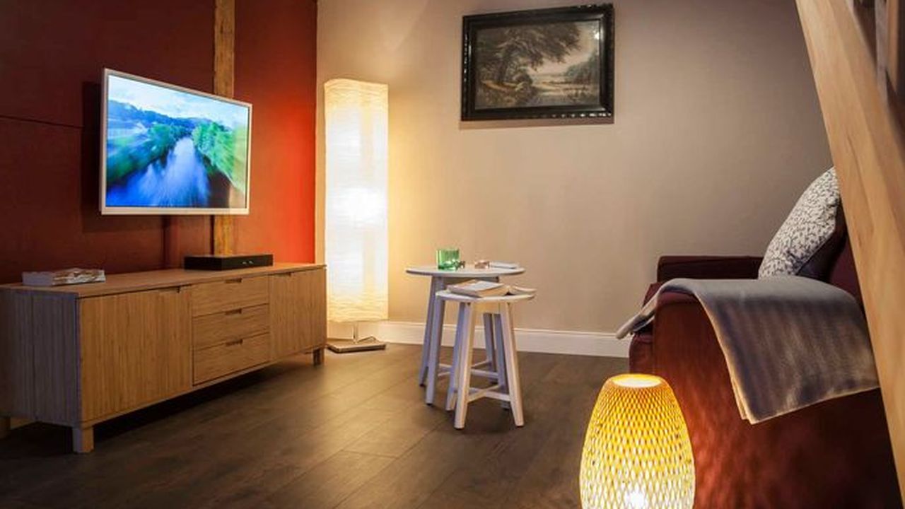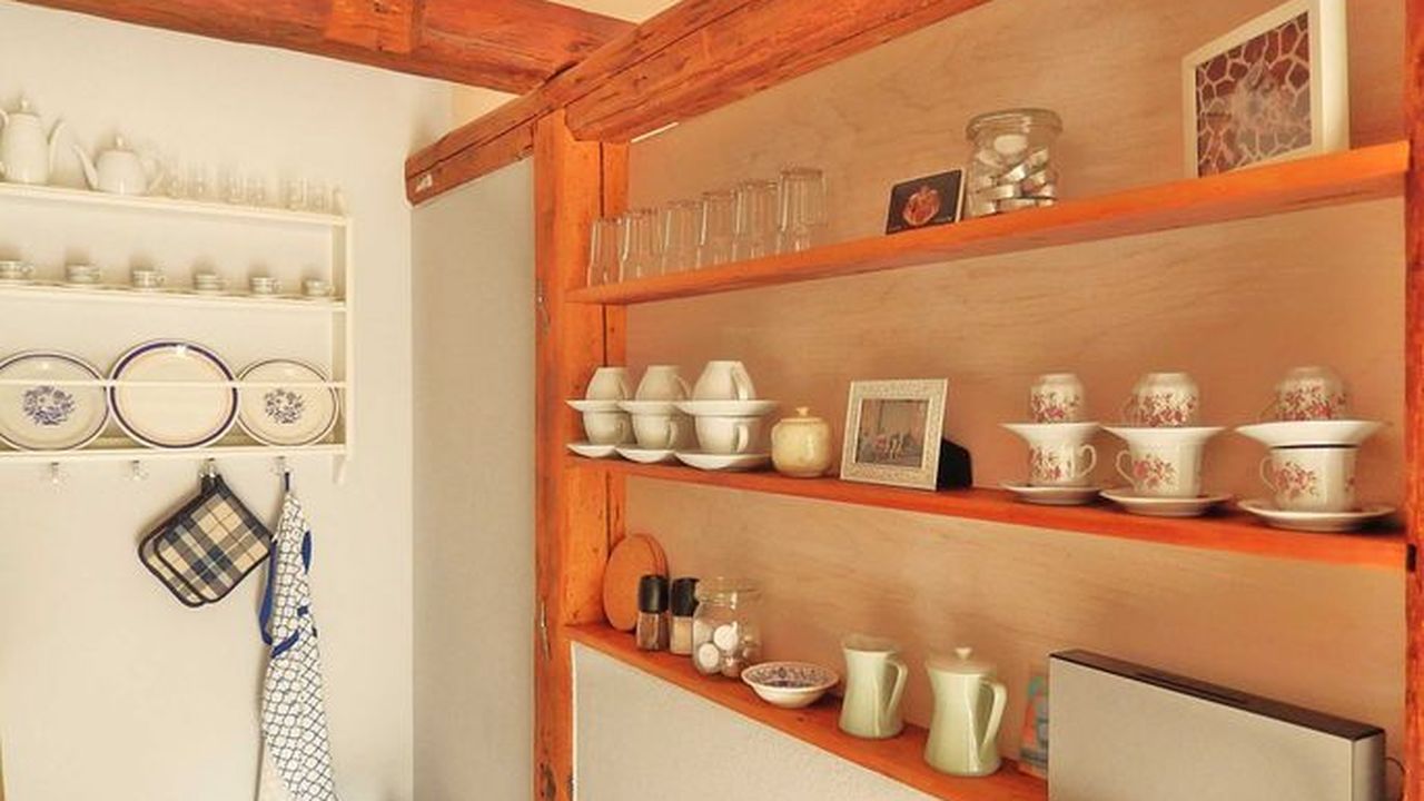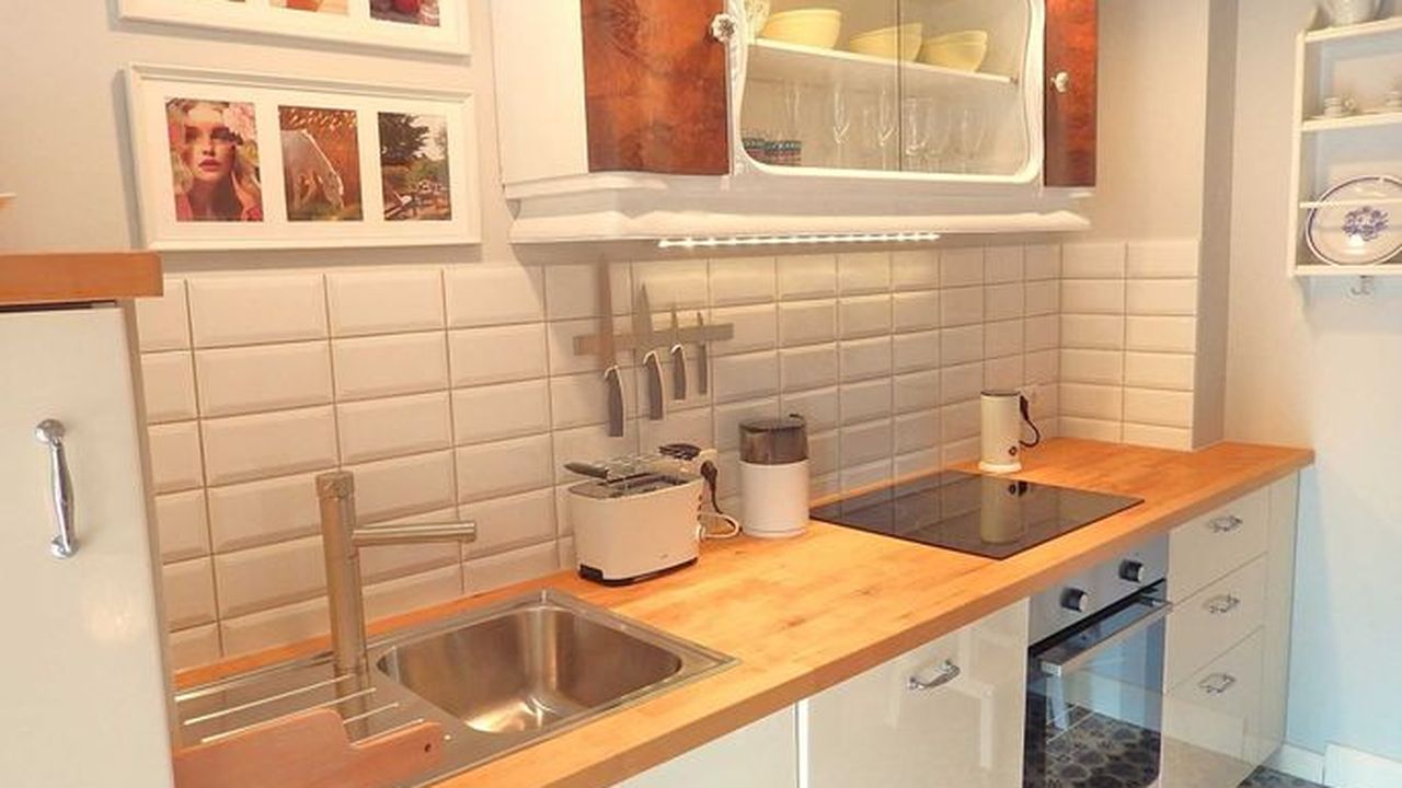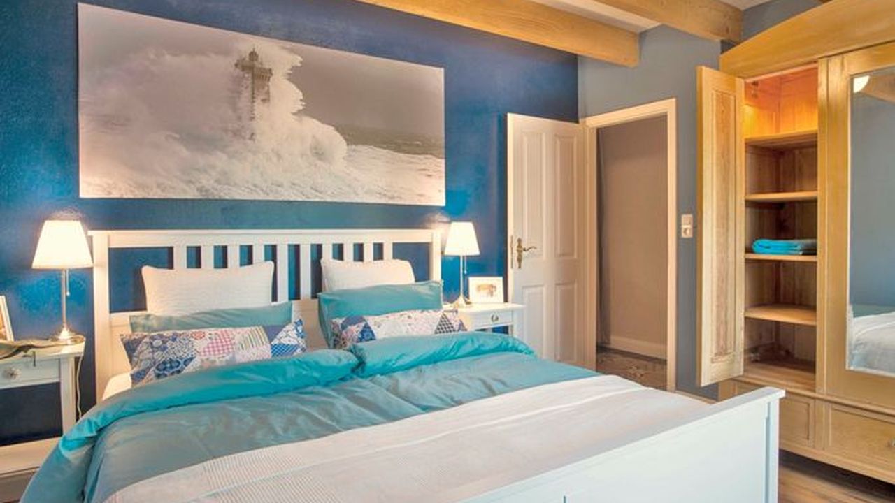 Der Parkplatz der Wohnung liegt unmittelbar vor der 32 m² großen Südwest-Terrasse die mit Holzmöbeln und Kissen ausgestattet ist. Die ca. 46 m² große Wohnung erstreckt sich über 2 Etagen. Im EG der Wohnung befindet sich der offene Wohnraum mit Küche, Esstisch und gemütlichem Sofa mit Blick auf den 40 Flachbildfernseher. Das Sofa lässt sich mit wenigen Handgriffen zum bequemen Doppelbett ausziehen. Eine Musikanlage mit CD-Player und USB-Anschluss sorgen für Unterhaltung und gemütliche Entspannung. Die Hochglanzeinbauküche lässt keine Wünsche offen. Sie umfasst Kühlschrank inkl. Gefrierfach, Spüle, Geschirrspüler, Vitrine mit Geschirr und Gläsern, einen Herd mit Cerankochfeld und Tastbedienung, einen Backofen sowie zwei Unterschränke mit Schubladen. Die Küchenausstattung ist komplett mit Töpfen und Pfannen und allen zum Kochen notwendigen Utensilien wie: Kartoffelstampfer, Dosenöffner, Korkenzieher, Sparschäler, Mixstab, Kochlöffel, Knoblauchpresse, anständige Messer etc. Ein Kaffeevollautomat der Firma Saeco und ein Milchaufschäumer zaubern einen perfekten Latte Macchiato. Zusätzlich gibt es einen Wasserkocher und Toaster. Das Geschirr und Besteck sind für 12 Personen damit der Geschirrspüler auch gefüttert werden kann. Außerdem gibt es Espressotassen, Milchkaffeetassen, Müslischalen und zum Teil antike Servierschüsseln und Platten. Der Essbereich grenzt an die Küche. Über dem Holztisch mit 4 antiken Stühlen thront ein wunderschöner Kronleuchter mit 12 Leuchten, der stufenlos gedimmt werden kann. Die Wohnung erstreckt sich über zwei Etagen. In die 1. Etage führt eine Holztreppe in einen kleinen Flur. Von hier aus geht es in das Bad und das Schlafzimmer. Das Badezimmer mit weißen Hochglanzfliesen ist ausgestattet mit einer Badewanne und Regendusche, einem Waschtisch mit zwei Schubladen, einem großen Spiegel mit zwei zusätzlichen Leuchten und einem Handtuchheizkörper. Es liegt ein Föhn mit Diffuser bereit sowie pro Person ein Bade- und ein Handtuch. Das Schlafzimmer ist ausgestattet mit einem Doppelbett (180 x 200) und einer wundervoll dicken Matratze. Jede Bettseite hat einen Nachttisch mit einer Lampe und davor einen flauschigen Teppich. Ein antiker Kleiderschrank mit Innenbeleuchtung und zwei Kommoden bieten viel Stauraum.Schlafzimmer mit Verdunkelungsrollo.