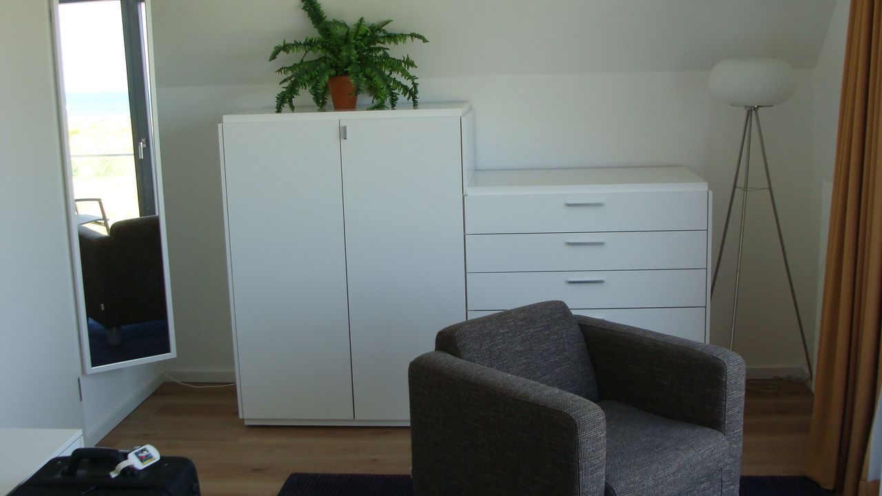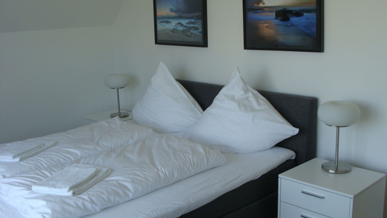 Das Haus enthält vier Schlafzimmer, wobei das Erdgeschoßschlafzimmer auch als Ruheraum oder zweites Wohnzimmer nutzbar ist, da das dortige Bett in ein bequemes Sofa verwandelbar ist. Alle Dachgeschoßschlafzimmer sind mit Boxspringbetten ausgestattet. Im oberen Bad ist eine Waschmaschine mit integriertem Trockner eingebaut, im unteren Schlafzimmer sind Toilette und Dusche getrennt. Ein Fön ist vorhanden.