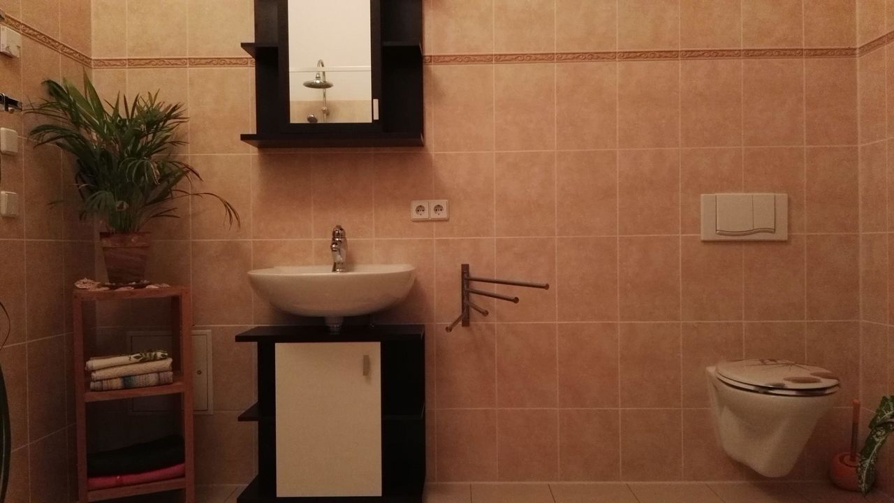 Das Badezimmer ist geräumig und hübsch gekachelt. Dort finden Sie Badewanne sowie Dusche. Außerdem gibt es dort viel Platz für Ihre persönlichen Pflegeprodukte.