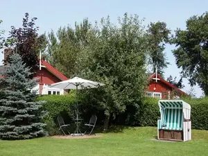 und ist somit ideal auch für Kinder. Hier ist genug Platz zum Herumtoben und Ballspielen. Zur Entspannung stehen Gartenmöbel, Strandkorb und Liege bereit.