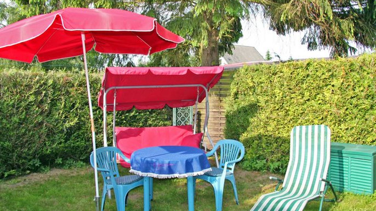 Das geräumige, 60m² Ferienhaus steht bei uns im großen Garten, sehr ruhig. Terrasse und Spielwiese befinden sich vor dem Bungalow.