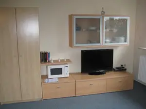 Ferienwohnung für Nichtraucher mit separatem Schlafzimmer und Balkon.• Wohnzimmer mit Couch und Schrankwand, SAT-TV, Radioempfang über SAT-TV, Eßplatz, Teppichboden.