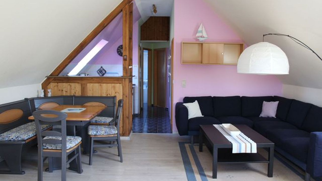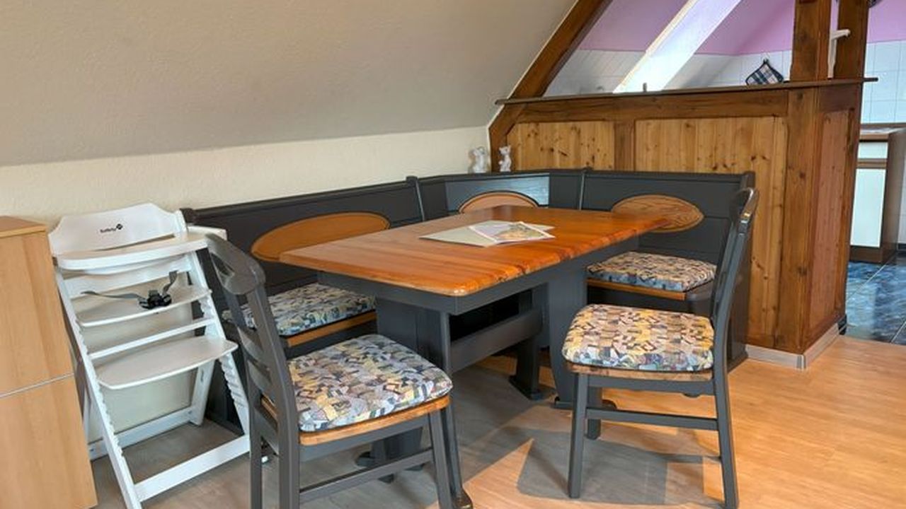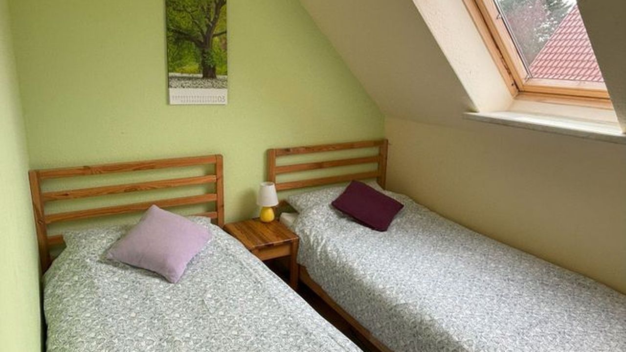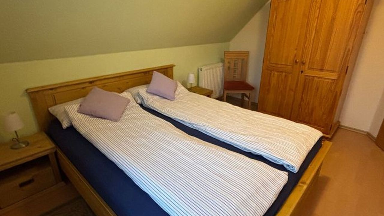 Nichtraucher-Ferienhaus (ca. 56 m²) im DG eines separaten Gebäudes (im EG sind Garagen) mit Platz für 4 Personen und einem Kleinkind bis 3 Jahre (Kinderbett und Hochstuhl inklusive) einem 1000 m² großem Grundstück in unmittelbarer Nähe der Müritz (300 m). Im Schlafzimmer 1 gibt es ein Doppelbett und einen Kleiderschrank, auf Wunsch zusätzlich ein Kinder-Reisebett (für bis 15 Kilo Gewicht). Das zweite Schlafzimmer verfügt über 2 Einzelbetten (zusammenschiebbar) und eine Kommode. Im Bad finden Sie mit Dusche, WC, Waschbecken, Cremeseife, Waschmaschine, Kinder-WC-Sitz, Kinder-Tritthocker. Küche: Geschirrausstattung für 6 Personen, Ceranfeld 4-fach, Spülmaschine, Backofen, Kühlschrank, Mikrowelle, Kaffeepad-Maschine, Wasserkocher, Toaster, Handmixer…. Im Wohnzimmer mit Essecke gibt es einen großen Esstisch für 6 Personen und eine Sofaecke. Ein großer Flachbild-Fernseher sowie RadioSonstige Nutzung inklusive: WLAN, 2 Fahrräder, 4 Liegen, 1 Kicker, diverse Brettspiele und Bücher, 2 Boccia-Spiele, 2 x Federball, 1 Schaukelgestell + 1 Schaukel + 1 Netzschaukel + Klettersprossen, Sandkasten + Spielzeug, abschließbarer Unterstand für Fahrräder - Kajaks - Kanus, 1 Bollerwagen, Lademöglichkeit für E-Bikes, Parkplatz, eingezäuntes Grundstück.