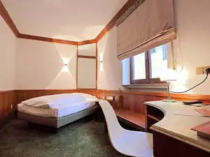 Das moderne Einzelzimmer Standard. Im Schlaf- und Wohnzimmer steht ein bequemes Einzelbett, ein Fernseher, Schreibtisch Minibar und Safe. Das Bad besteht aus Dusche, WC und Fön. Das WLAN können Sie kostenlos nutzen.Beschreibung der Unterkunft