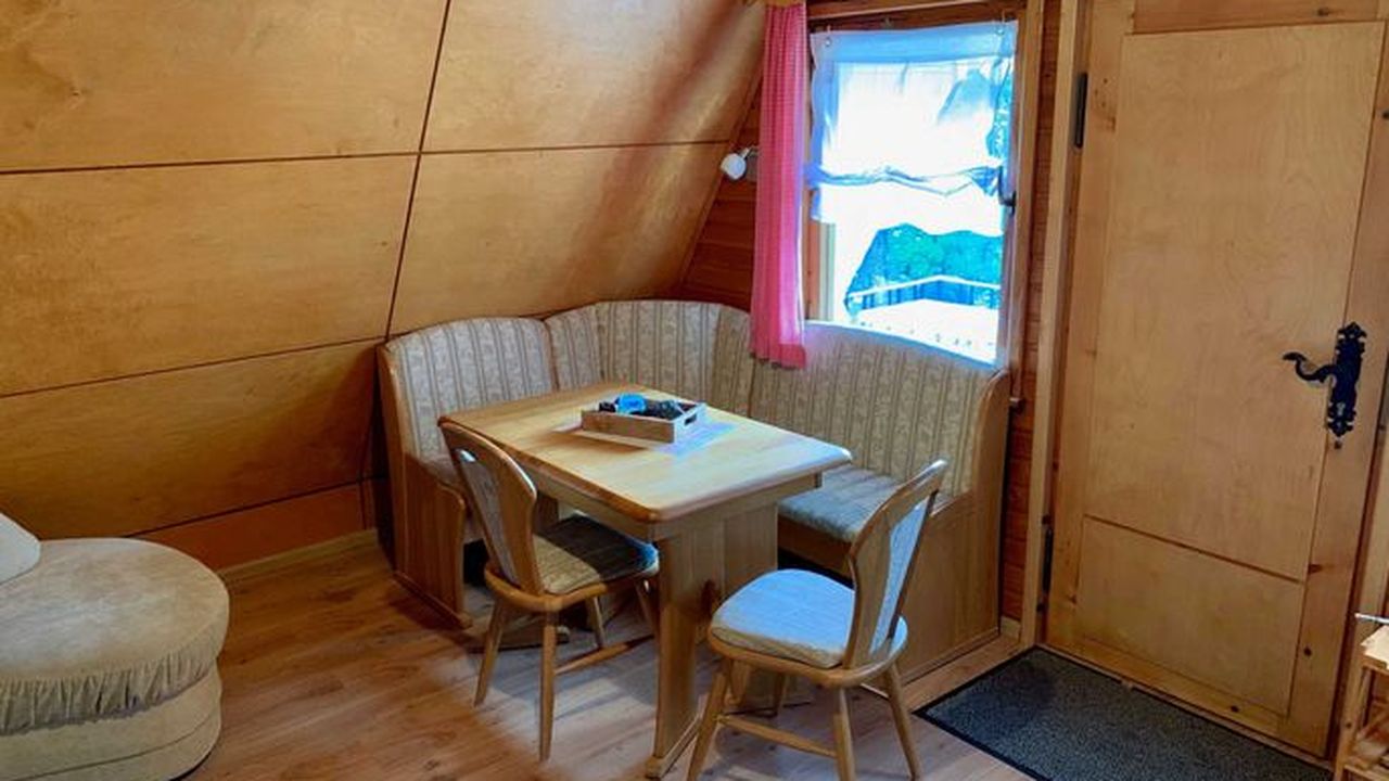 Im Aufenthaltsraum steht ein Tisch mit Platz für sechs Personen. Auf dem Grundstück befindet sich weiterhin ein kleiner Grillplatz.
