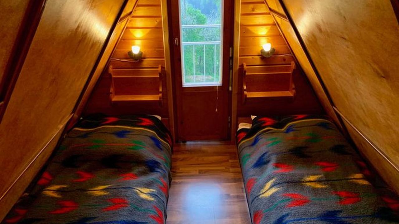 Das Grundstück hat eine Fläche von ca. 305 qm und ist mit einer größeren massiven Finnhütte (42 qm) mit kleiner Terrasse und kleinem Balkon bestückt. Die Unterkunft bietet Platz für bis zu 4 Personen. Die Schlafplätze befinden sich im Spitzboden der Hütte. Es handelt sich ausschließlich um Einzelbetten. Die Unterkunft ist winterfest. Die Ausstattung ist einfach und rustikal, es ist aber alles da, was man so braucht.In der Küche befindet sich eine Spüle mit Warm- und Kaltwasser, ein Kühlschrank, ein Wasserkocher und eine Kaffeemaschine. Nebenan befindet sich ein kleines Bad mit Dusche, Waschbecken und WC.
