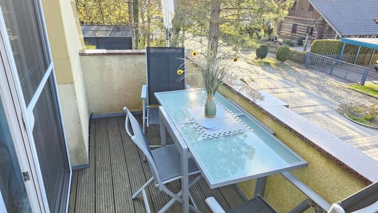 • Balkon, ausgestattet (Mai-Oktober) mit Tisch, Stühlen und Sonnenschirm