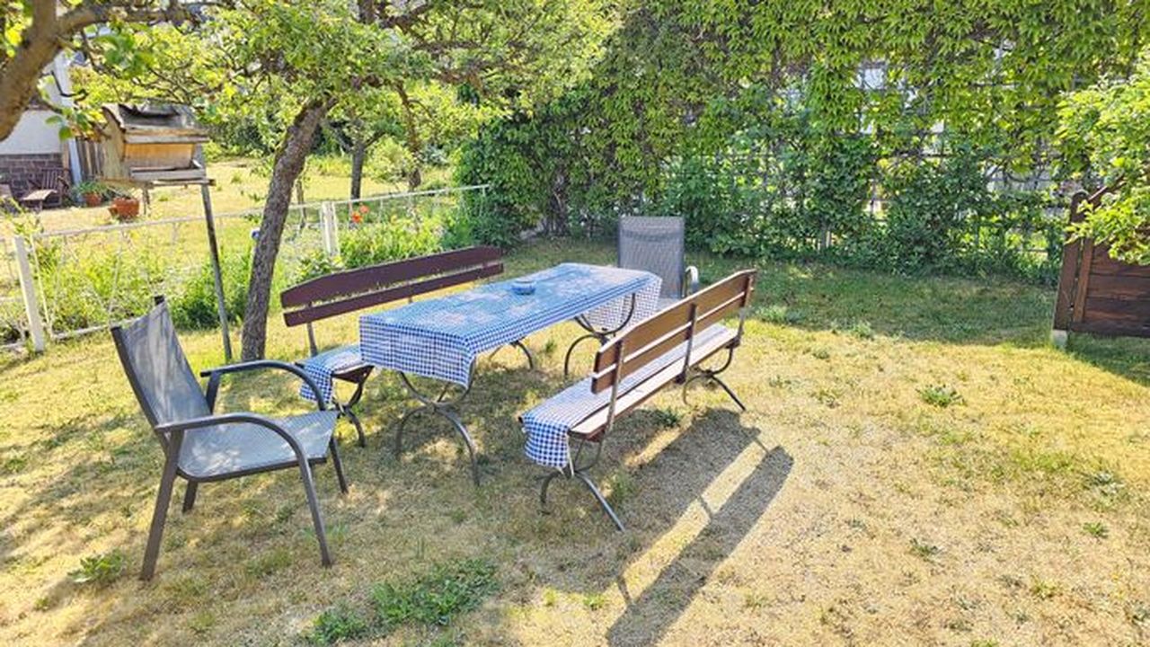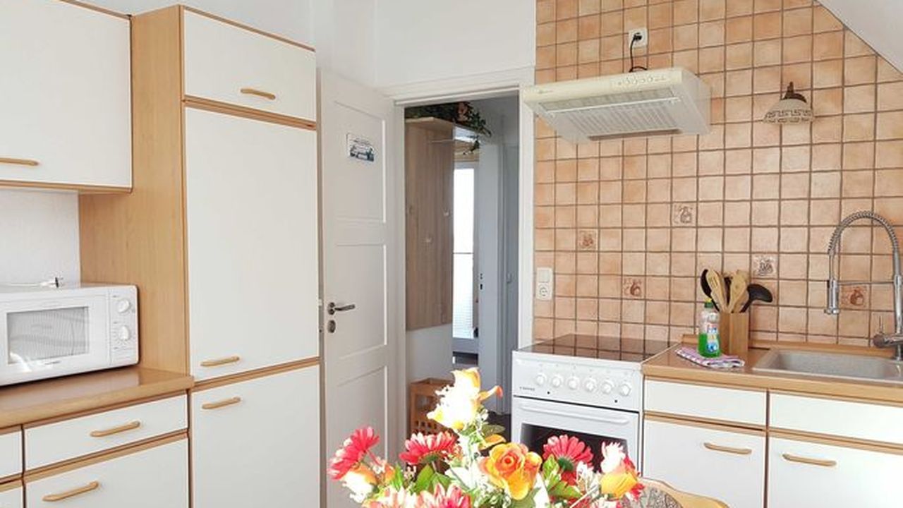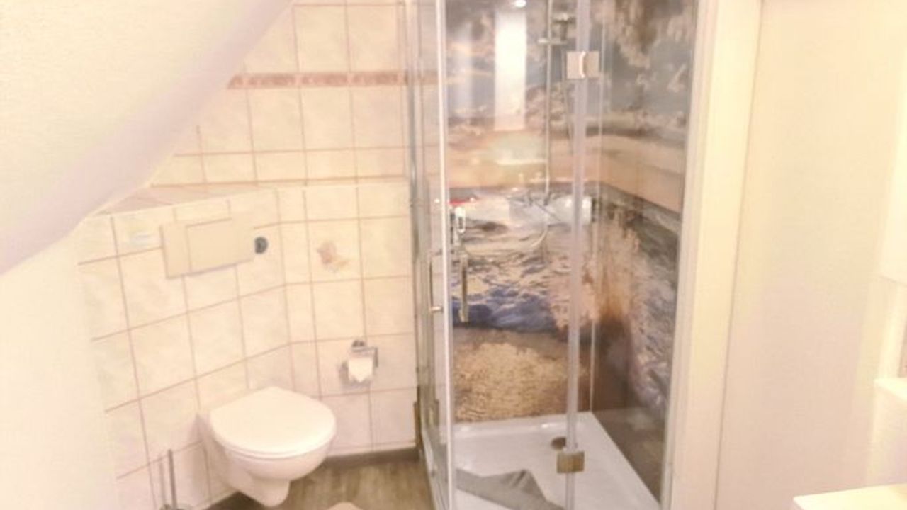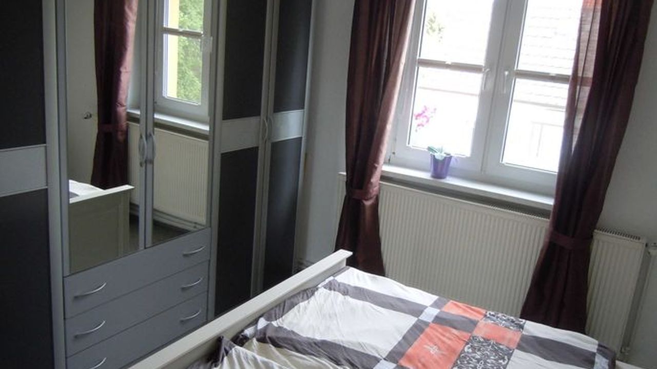 Die Ferienwohnung (für bis zu 4 Personen + 1 Kleinkind im zusätzlichen Reisebett) befindet sich im 1.OG des Eigenheims. Hier können Sie im Flur Ihre Schuhe und alltägliche Garderobe ablegen. Vom Treppenflur aus kommen Sie ins Bad, in die Küche oder ins angrenzende Wohnzimmer. Das Bad ist mit Dusche und WC ausgestattet. Die nebenliegende große Küche bietet Ihnen einen Herd mit Ceranfeld und Dunstabzug, einen großen Kühlschrank mit Gefrierfächern, einen Geschirrspüler, eine Mikrowelle, Kaffeemaschine, Toaster und mehrere Abstellmöglichkeiten und Schränke mit Geschirr/Kochgeschirr sowie Haushaltsutensilien. Zur Unterhaltung haben Sie hier ein Radio. Zum Entspannen ist das gemütliche Wohnzimmer, in welches Sie wieder über den Treppenflur gelangen. Hier können Sie ungestört TV-Sendungen sehen oder einfach relaxen und ein spannendes Buch lesen. Hier im Wohnzimmer erfolgt die Aufbettung für 2 Personen auf der ausziehbaren Schlafcouch. Im angrenzenden Schlafzimmer mit Doppelbett finden Sie genügend Platz für Ihre Garderobe. Die Nachmittags- und Abendsonne genießen Sie auf dem Balkon, ausgestattet (Mai-Oktober) mit Tisch, Stühlen und Sonnenschirm.