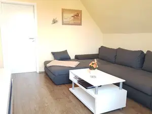 Die Ferienwohnung OstseeStrand befindet sich, über eine Treppe begehbar, im 1.OG in einem Eigenheim mit einer weiteren, unterliegenden Ferienwohnung.