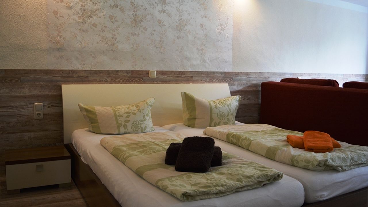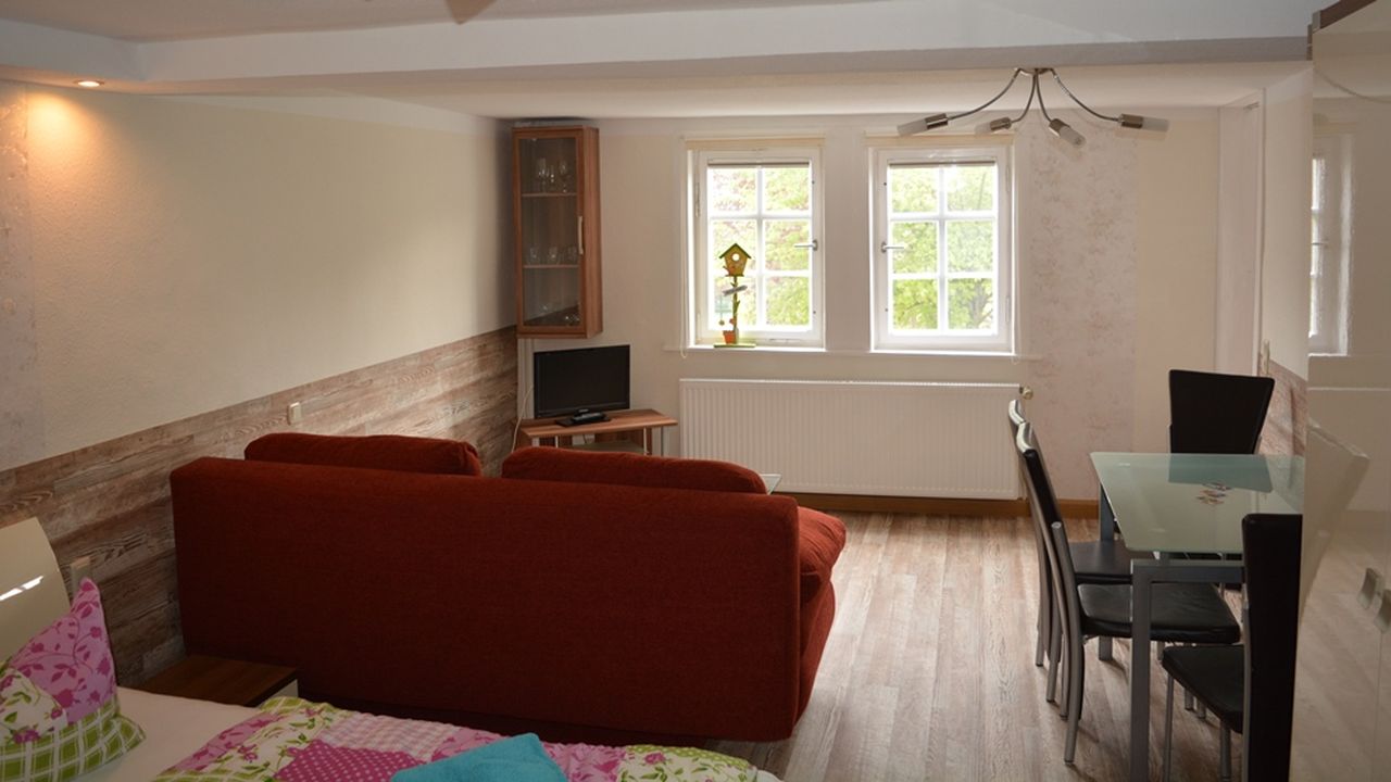 Unser familiär geführtes Haus in zentraler aber ruhiger Lage bietet teilweise Blick auf den Garten des Bachmuseums und das Burschenschaftsdenkmal. Die zentrale Lage im historischen Stadtkern in der Nähe des Bachhauses, Lutherhauses, Burschenschaftsdenkmal und Wartburg ermöglicht Ihnen eine fußläufige Erreichbarkeit. Kinderermäßigung, Aufbettungen, Vermittlung von Gepäck- und Personentransfer sind möglich. Das historische Fachwerkhaus verfügt über sechs Ferienwohnungen und ein Doppelzimmer mit moderner Ausstattung. Das gesamte Haus bietet Übernachtungsmöglichkeiten für bis zu 40 Personen (Kinder- und Babybetten ausgeschlossen) und ist für Individualreisende, als auch für Familientreffen geeignet. Als Schlafmöglichkeit stehen Doppelbetten sowie zum Teil Schlafsofas zur Verfügung. Frühstück im benachbarten Hotel bzw. Cafe ist nach Absprache möglich.Sonstiges
