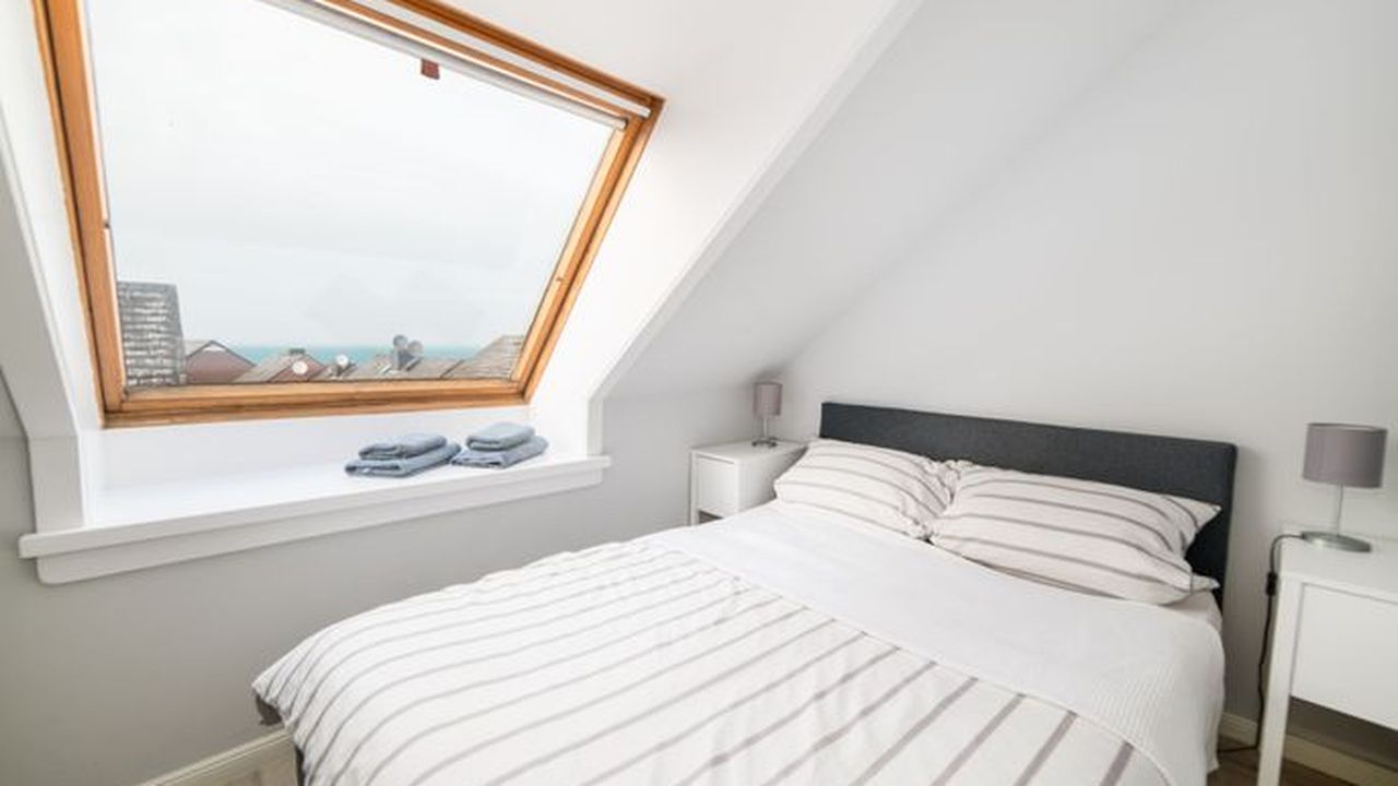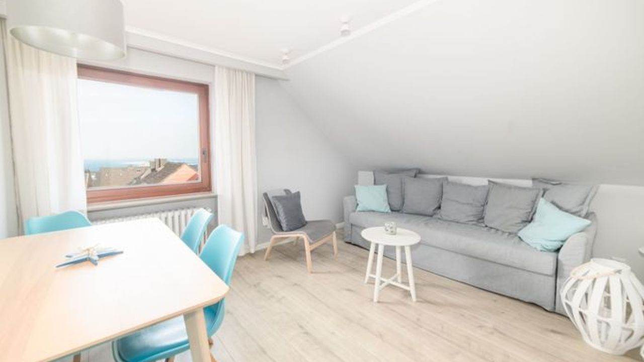Zusätzlich bietet die Ferienwohnung Meerblick über den Dächern der anderen Häuser.