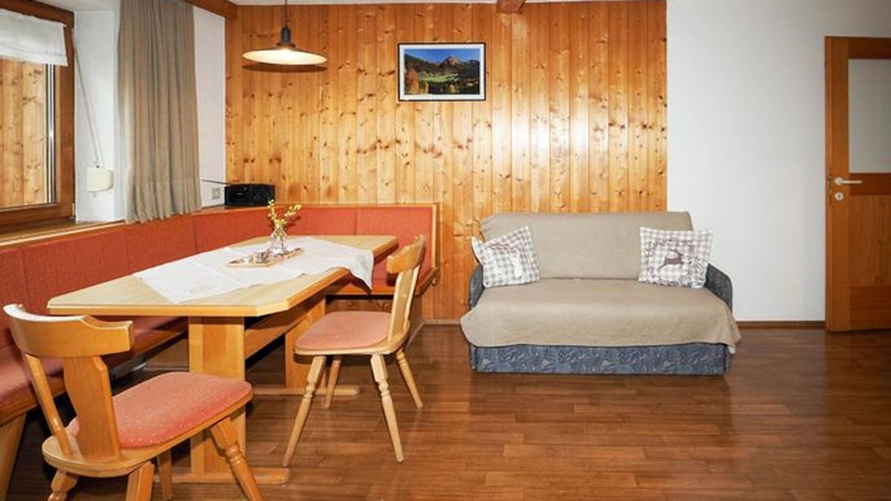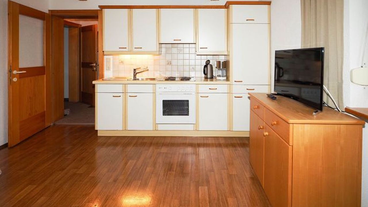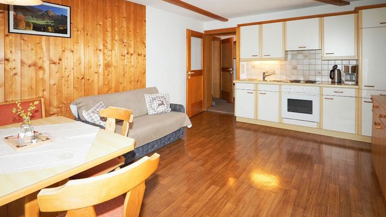 Unsere Ferienwohnung ist mit hellem Naturholz ausgestattet. Die Wohnung besteht aus Wohnküche Kühlschrank mit Gefrierfach, Elektroherd mit Backofen, Kaffeemaschine, TV, Radio und Couch zum Fernsehen. Vom Schlafzimmer mit Doppelbett und Couch zum ausziehen (für Kinder bis 8 Jahre) geht es in Dusche und WC. Der Balkon ist auf Ost- und Südseite ausgerichtet.Sonstiges