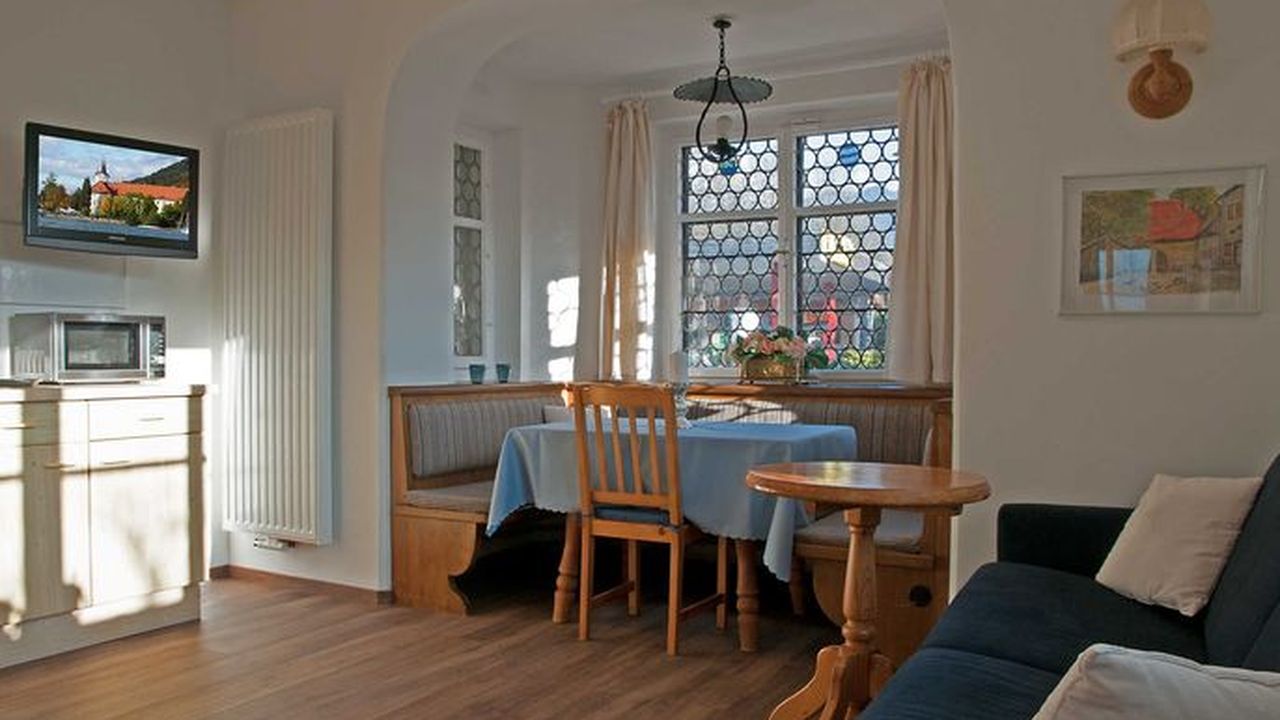 Bushalte- und Schiffsanlegestelle und der Kurpark sind ebenso in kurzer Distanz zu erreichen.