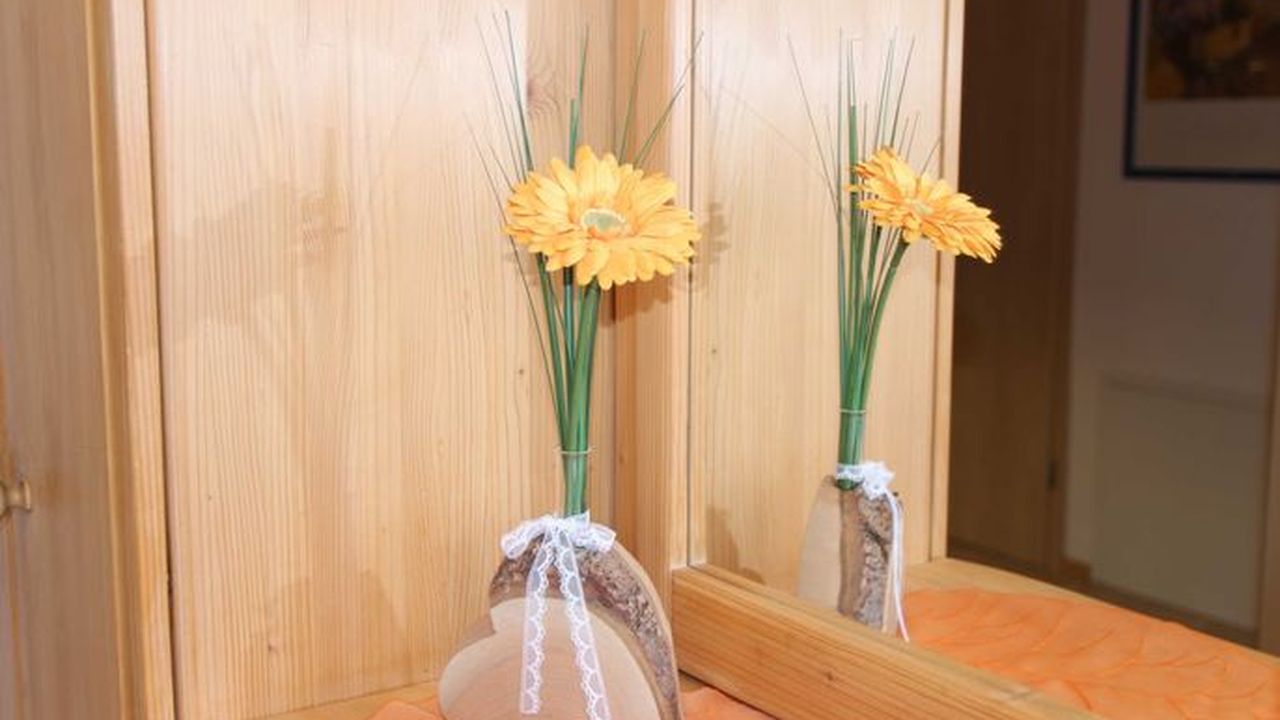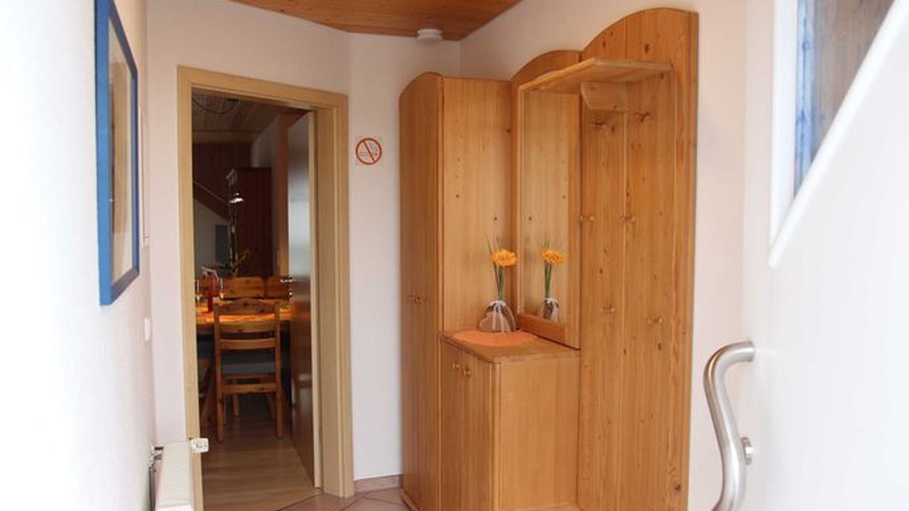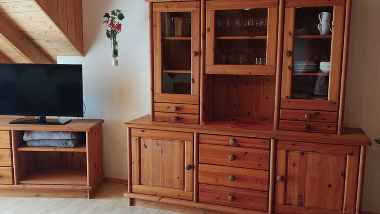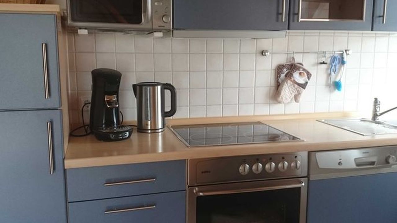 Ausstattung: Garderobe, Schlafzimmer mit Doppelbett, Wohnzimmer mit 40 Flachbildfernseher, voll ausgestattete Küchenzeile mit Kühl/Gefrierschrank, Herd/Backofen, Mikrowelle, Kaffeemaschine, Wasserkocher, Toaster, Eierkocher, Essecke, Bad mit Dusche, Badewanne und Föhn. Zusätzliches Kinderbett im Schlafzimmer möglich. Ihr Auto können sie wettergeschützt unter dem Carport parken. Für ihre Fahrräder steht ein abschließbares Fahrradhäuschen zur Verfügung.