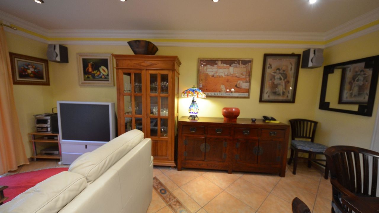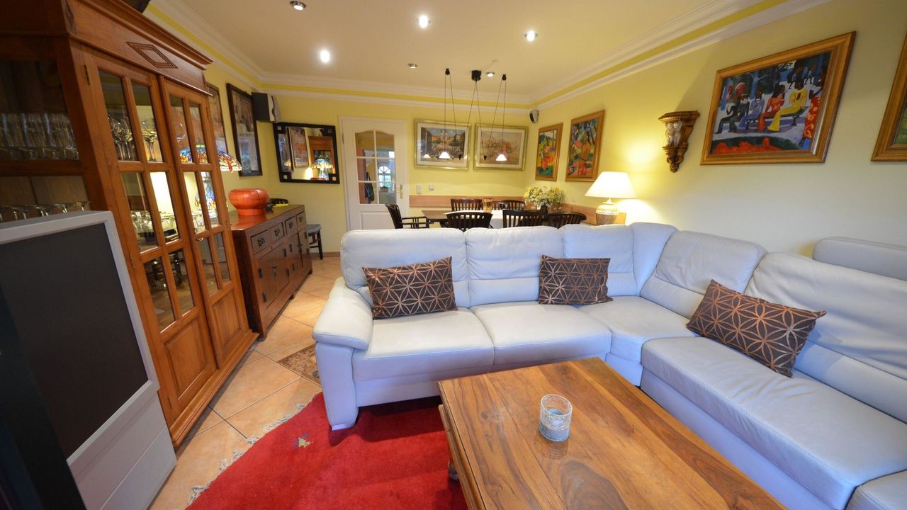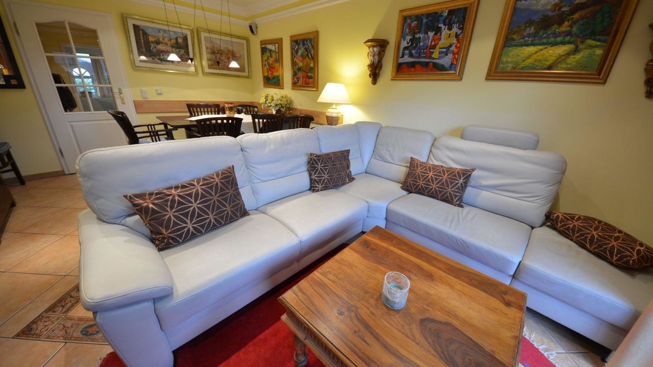 schöne Couch-Garnitur und Opiumtisch, Telefon, 120er - Flachbild - TV,